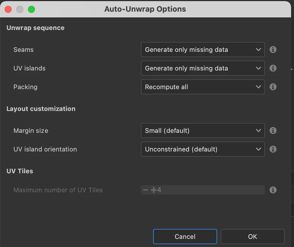 However, are UVs are normalized with a constant texel density, and we don't want to loose track of their scaling, in order to get the materials tiling values right later on.