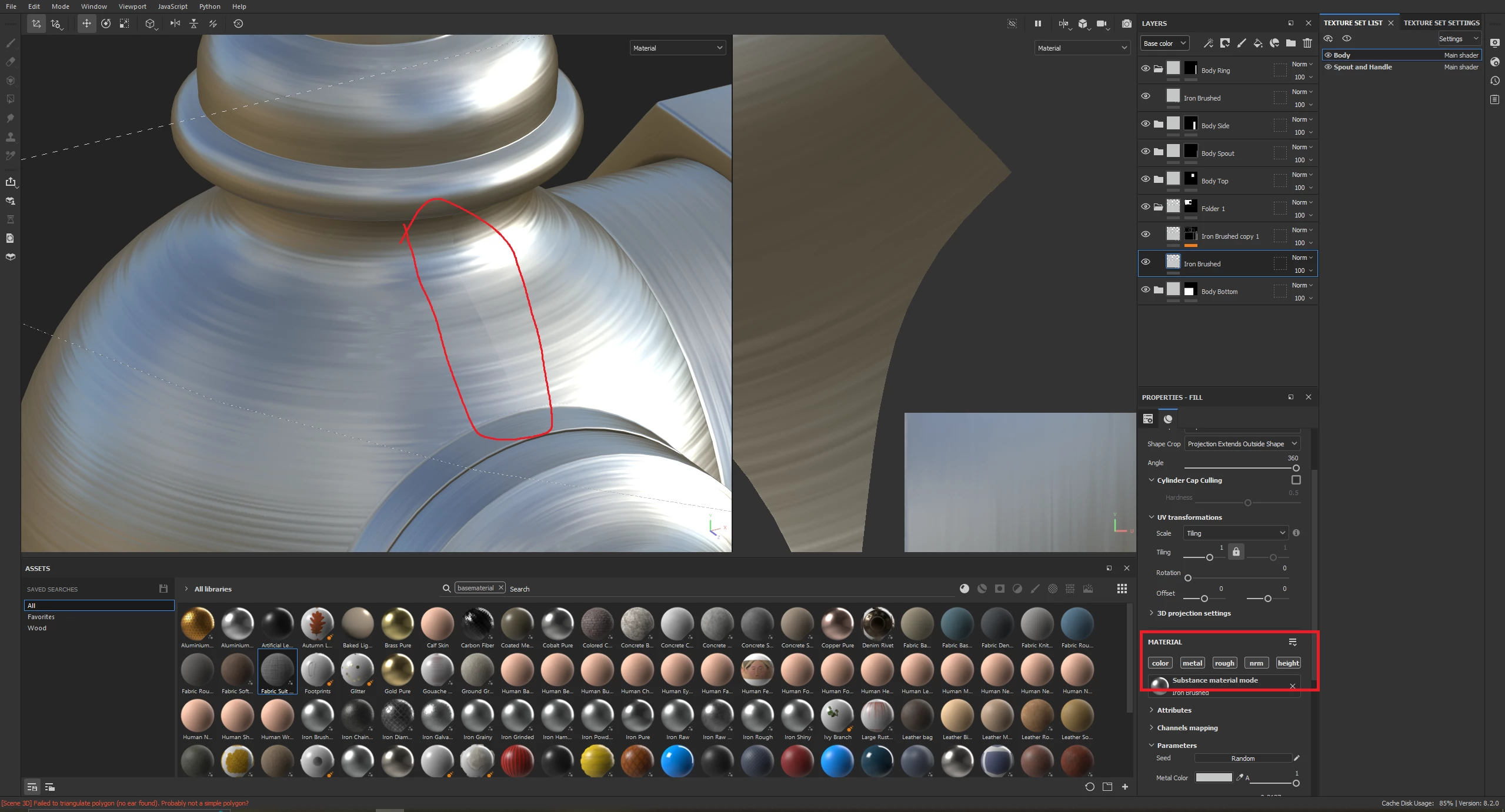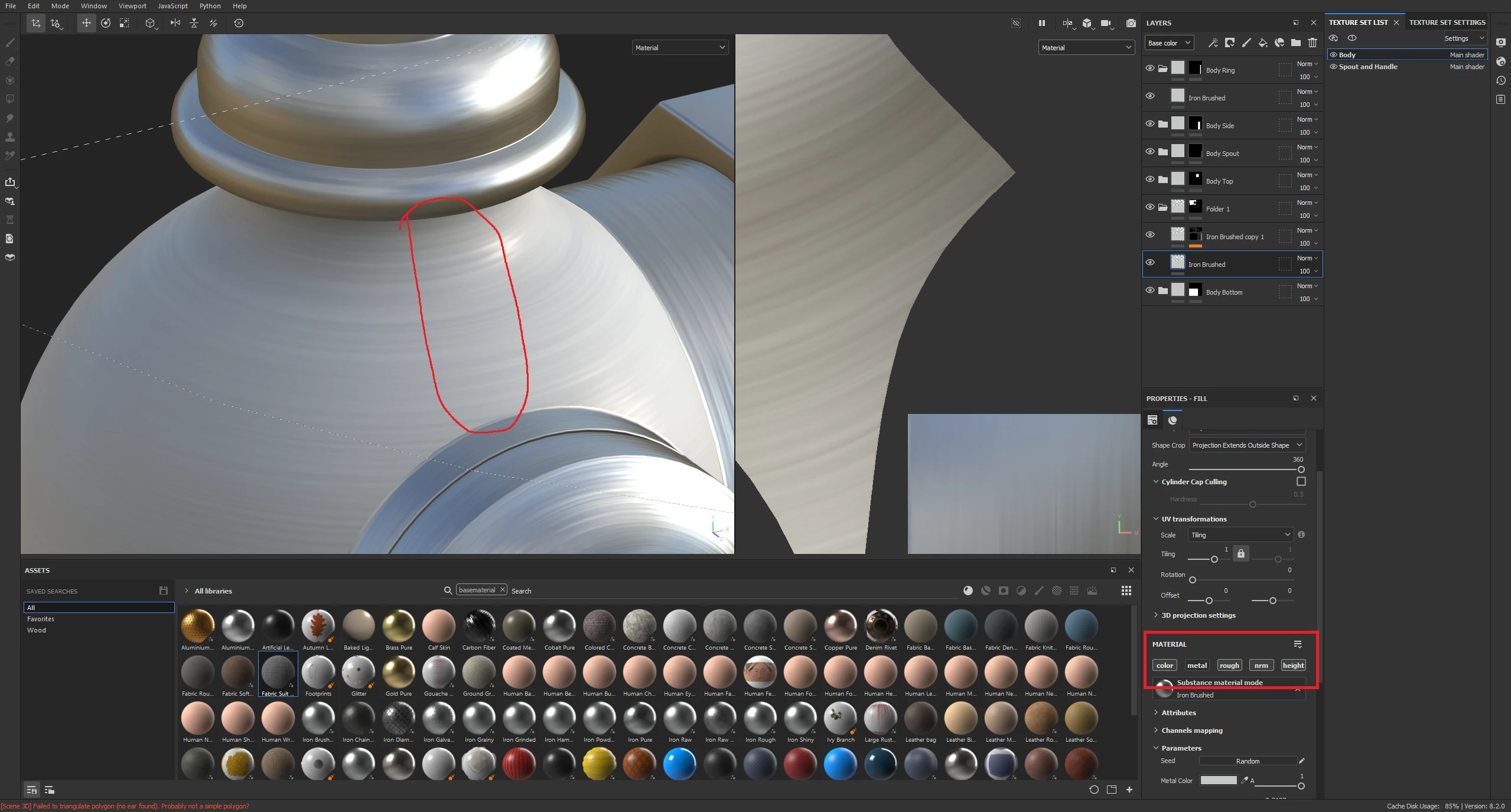 I am in the process of covering seams in a model, and have noticed that regardless if I have a layer to cover seams or not, the metallic channel retains the seam. I'm not sure if this is a visual bug, or if there is something I may be missing in the process. I have provided screenshots with the metallic channel on and off: