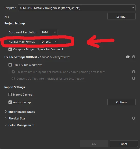 I changed this setting to OpenGL as a test; imported an OpenGL normal map - and it looks wrong.