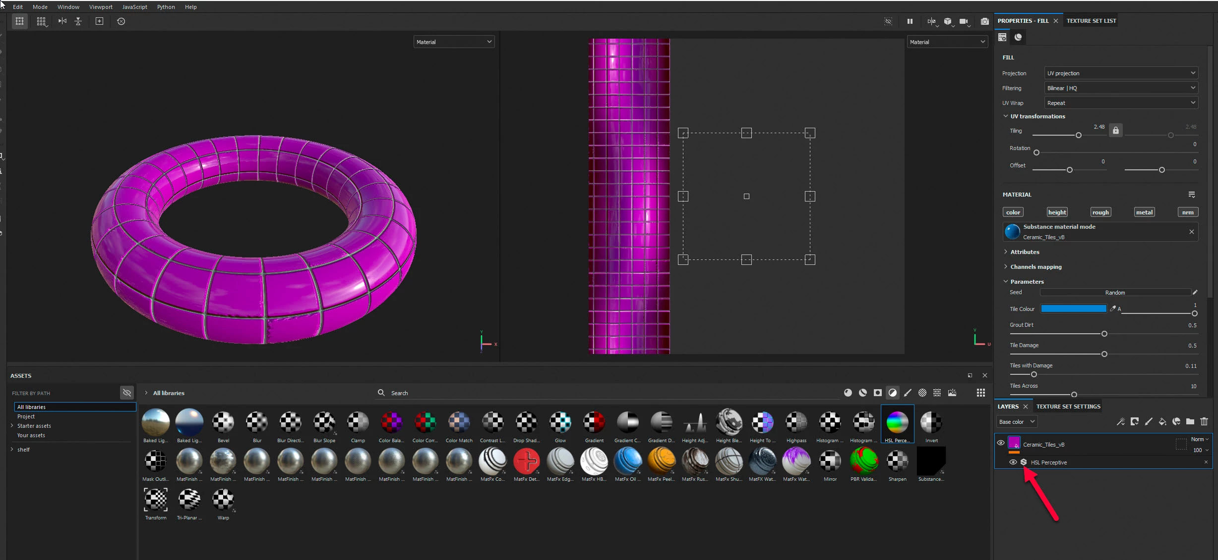 "The Effects are a set of various actions that can be applied on the content or the mask of a layer in the layer stack of Substance 3D Painter."