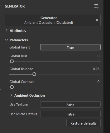 Hey! So, I created a smart material for a project i'm working on to use as a base for all of my objects, and when testing it earlier, i noticed that whenever i import it, even if it's on the same object i made the smart material on, things like my generators and filters revert to saying mg_ambient_occlusion (Outdated) instead of Ambient_Occlusion. When i go to change it back to ambient occlusion in the generator settings, it resets every change i did back to default. Is there a way to fix this so i wont have to redo all of my sliders everytime? In the attached images below are the outdated version before i re-change it back to AO and after.