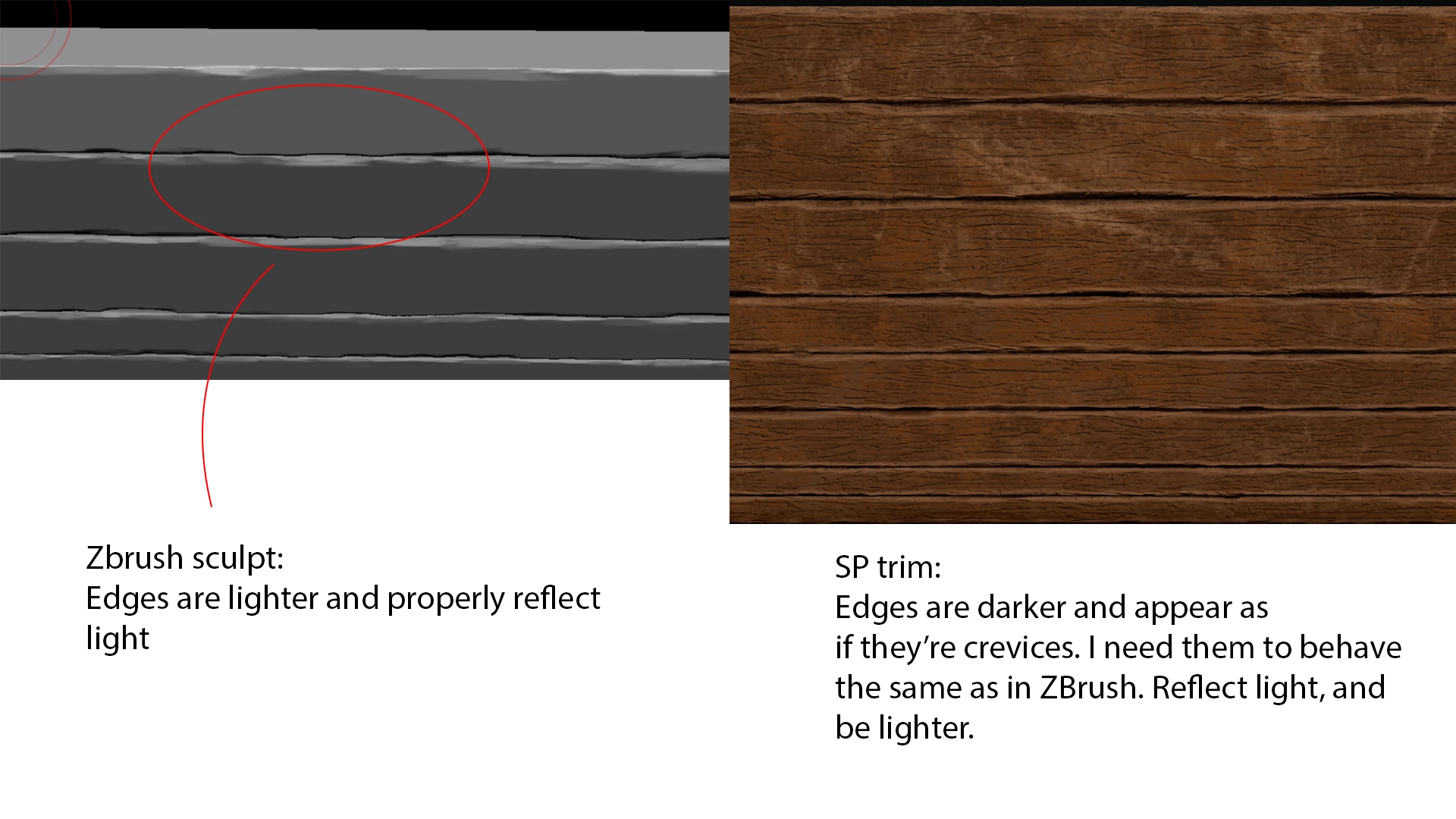 I guess this is logical considering that high poly wood beams are aligned on top of one another, and the sculpted edges fall into the dark area. But this is not what I am looking for.