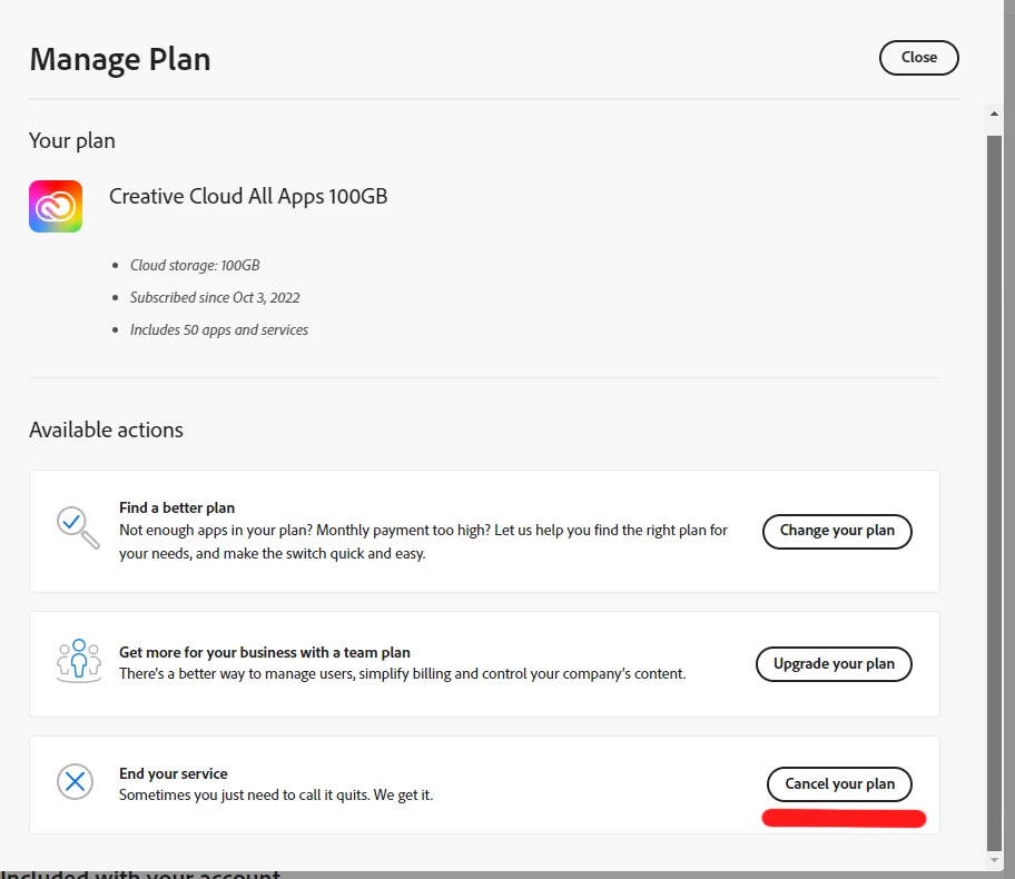 A new window will open with your options and you can cancel your plan there.
