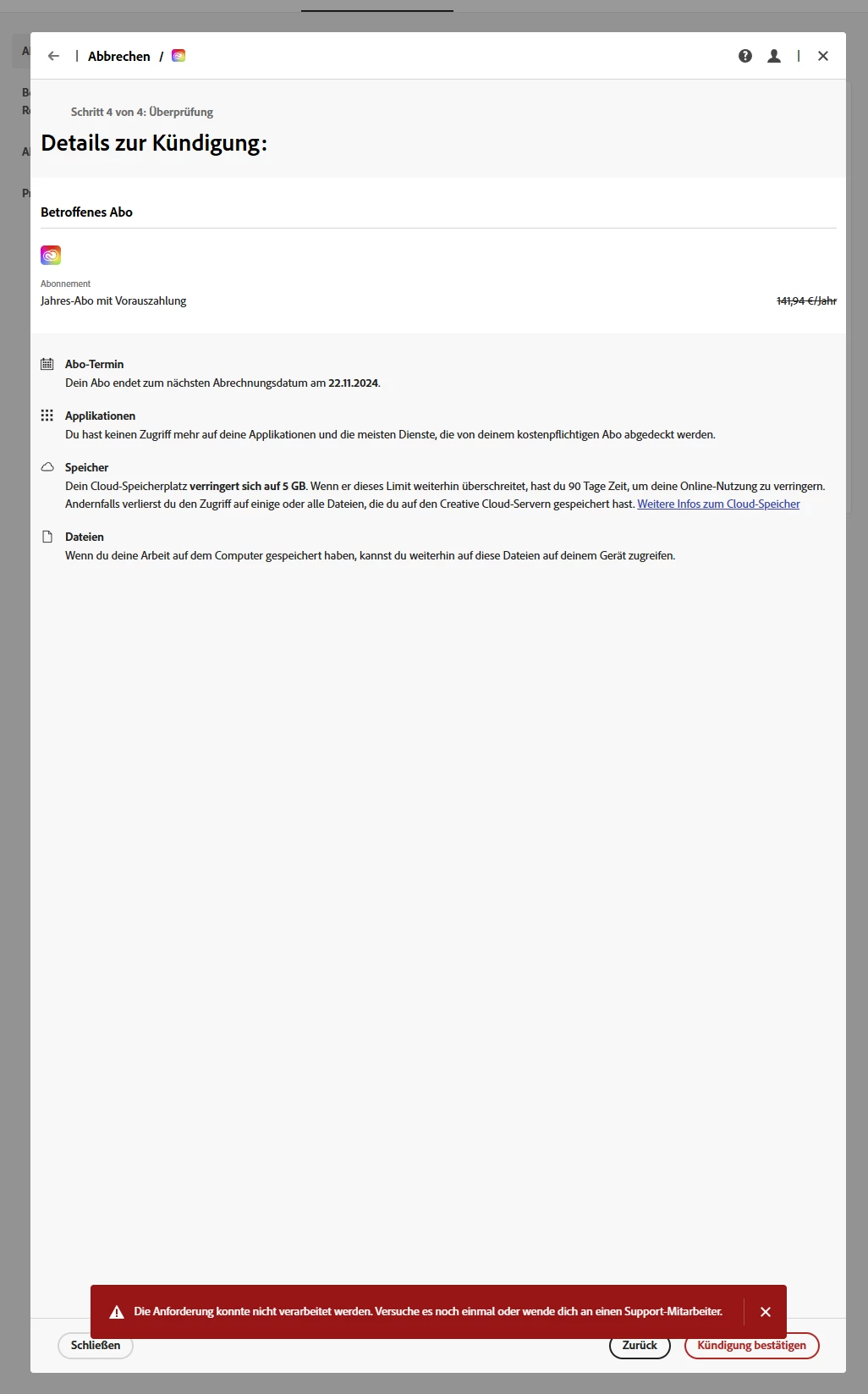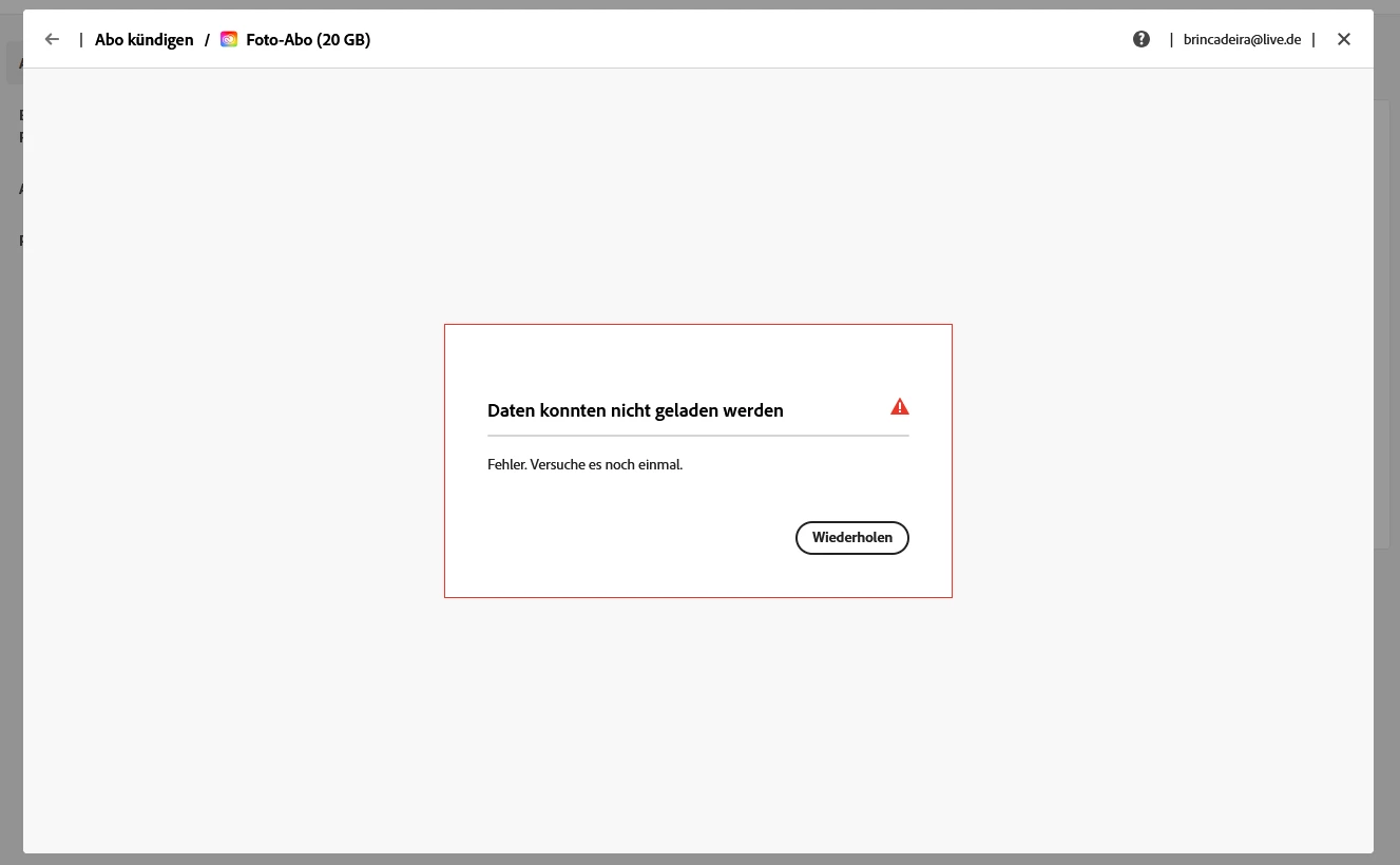 Abo kündigen - "Daten konnten nicht geladen werden. Fehler. Versuche es noch einmal"