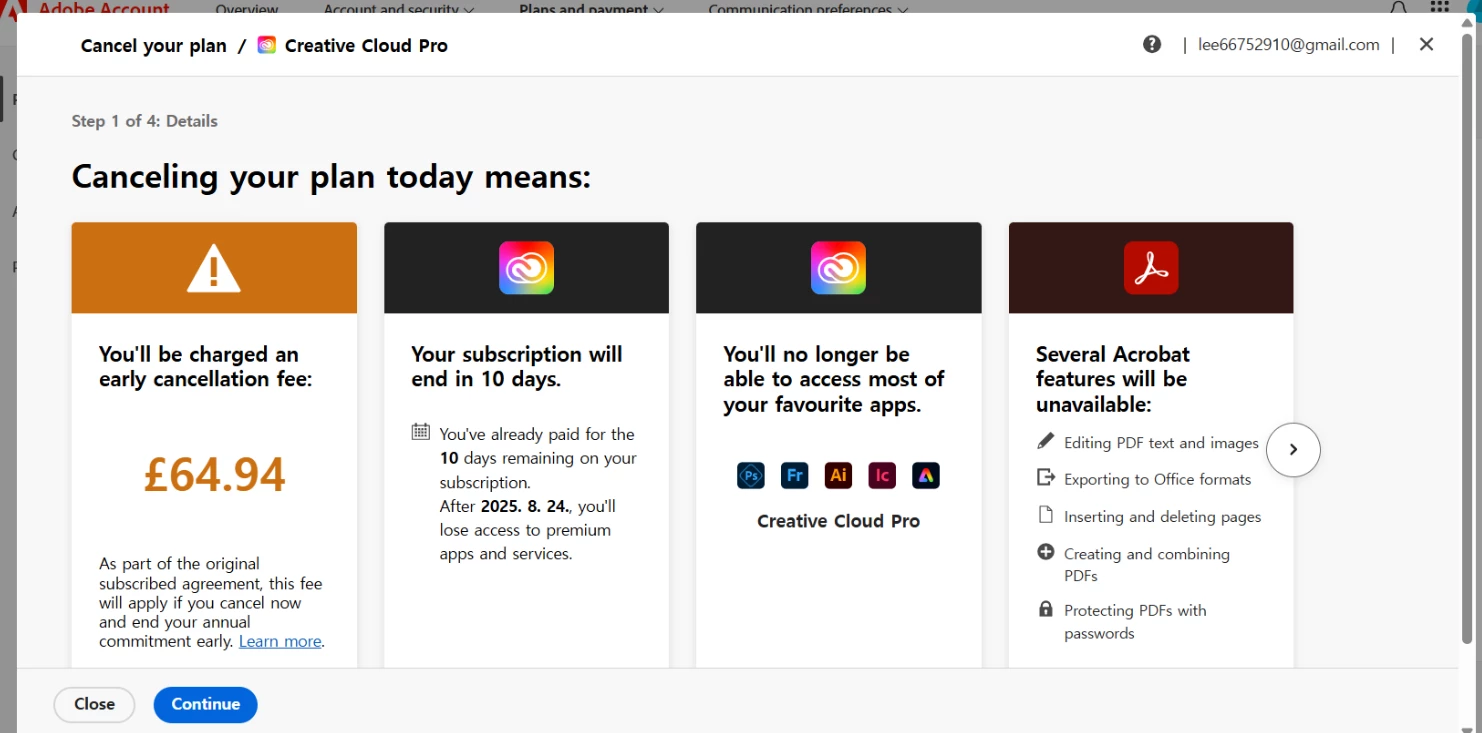 I just found out about the ongoing charges and also saw that I would be charged an early cancellation fee of £64.94 if I cancel now.
