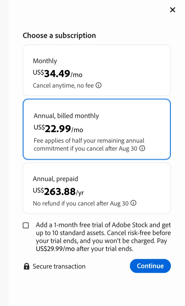 Hello, I subscribed to Adobe Premiere Pro (Creative Cloud Pro) in April for one month, but I did not realize it was set to auto-renew as an annual plan.