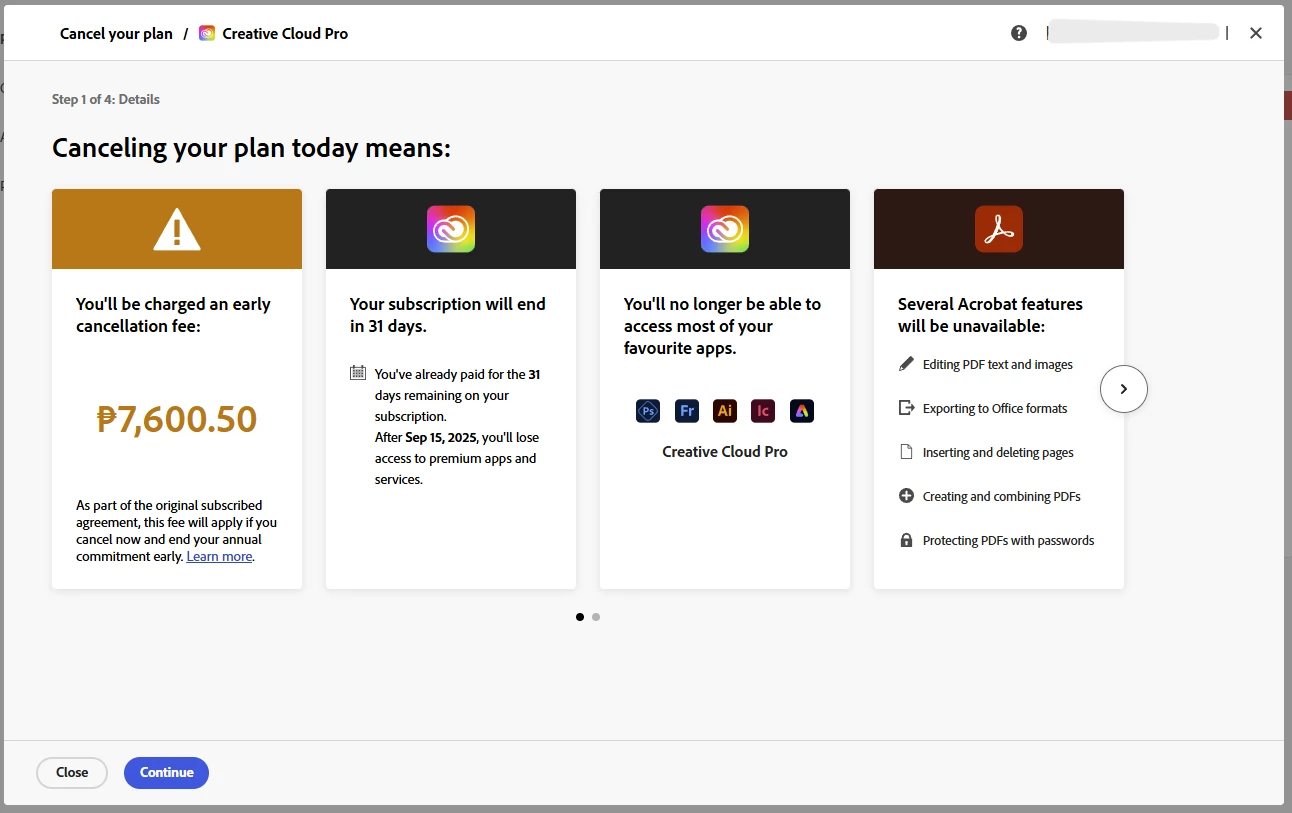 3. If this cannot be resolved, can you reimburse my latest payment? Allow me to cancel my subscription without the fee (since this was an error on your end)? Then, I'll apply for another yearly subscription from a different account (then opt to pay the one-year subscription instead)?