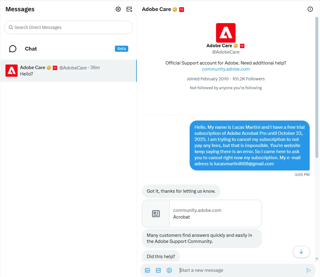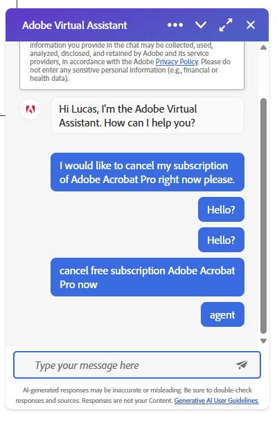 Adobe is to letting me cancel my free trial subscription