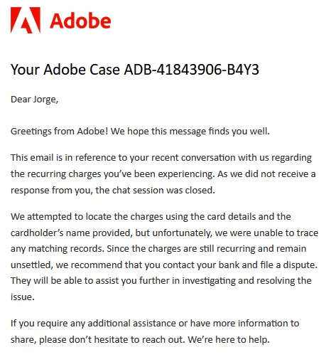 Adobe Keep My Money, Help Me Cancel - Adobe Case ADB-41843906-B4Y3