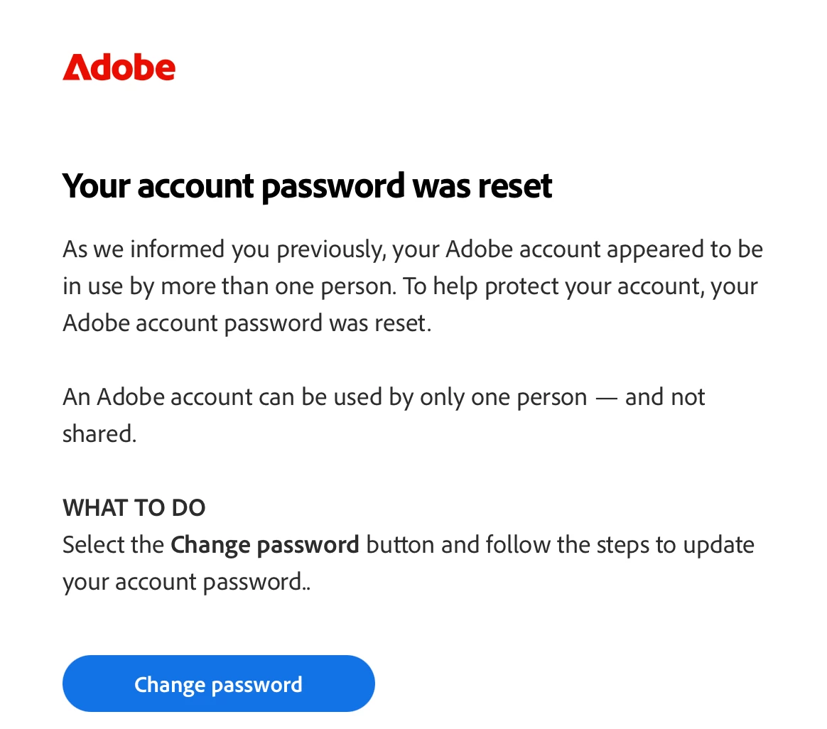 Adobe keeps changing my password and blocking me saying there is more than one user
