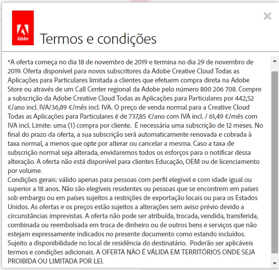 Bom dia, já tentei o contacto ao suporte mas sem sucesso. Sou cliente com subscrição do pacote completo de aplicações, pago o preço normal. Gostaria de ter o mesmo benefício que novos clientes estão a ter agora com a promoção do black friday! Acho que devem dar valor aos clientes que já têm, porque somos nós que já somos vossos clientes. Agradeço uma rápida resolução caso contrário vão perder um cliente.