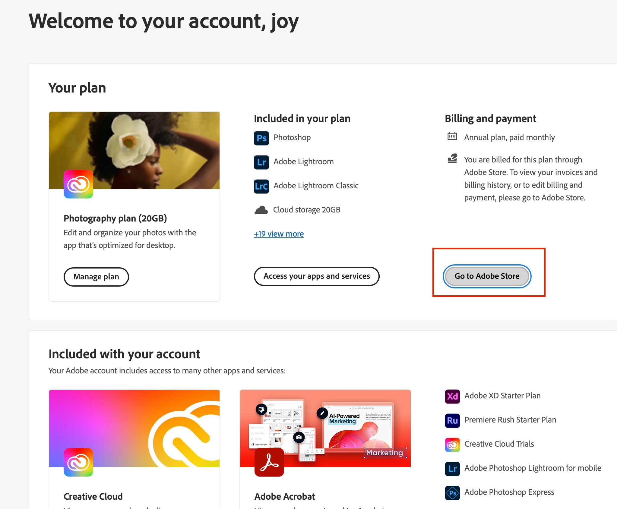 Hi i was trying to go into adobe store website, to check my invoice for adobe subscription plan.