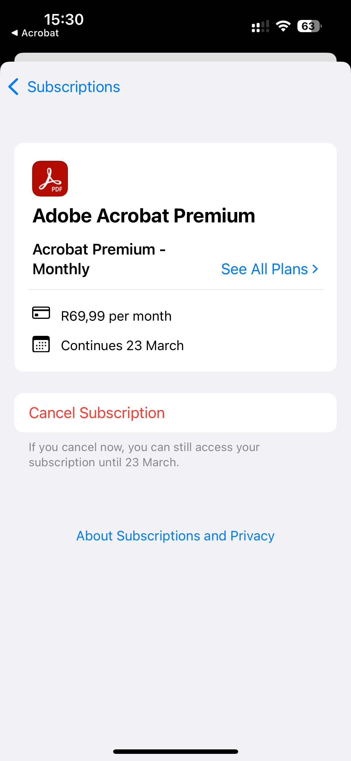 i already have adobe and I pay R69,00