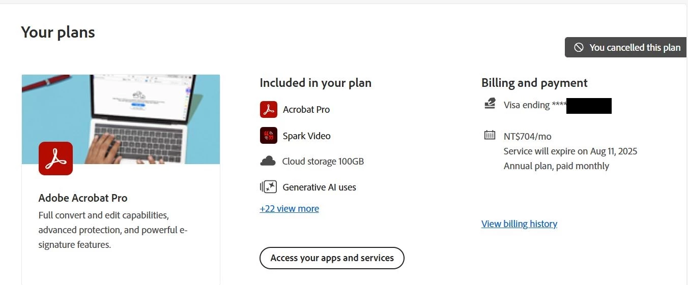 It's now past the 14 days period to request a painless cancellation for me, but I feel really ambushed, and cancelling the plan costs me immensely too. Despite being a heavy Photoshop user, I don't really know what Adobe Acrobat Pro is (some fancy PDF viewer?). I don't even have it installed on my computer! This feels like a midunderstanding I don't know how to sort out. And the official customer service channel is all just AI and auto response at this point. I can't reach a human being to debate or even just try to understand this situation. What can I do, and what would you advise me do, in this case?