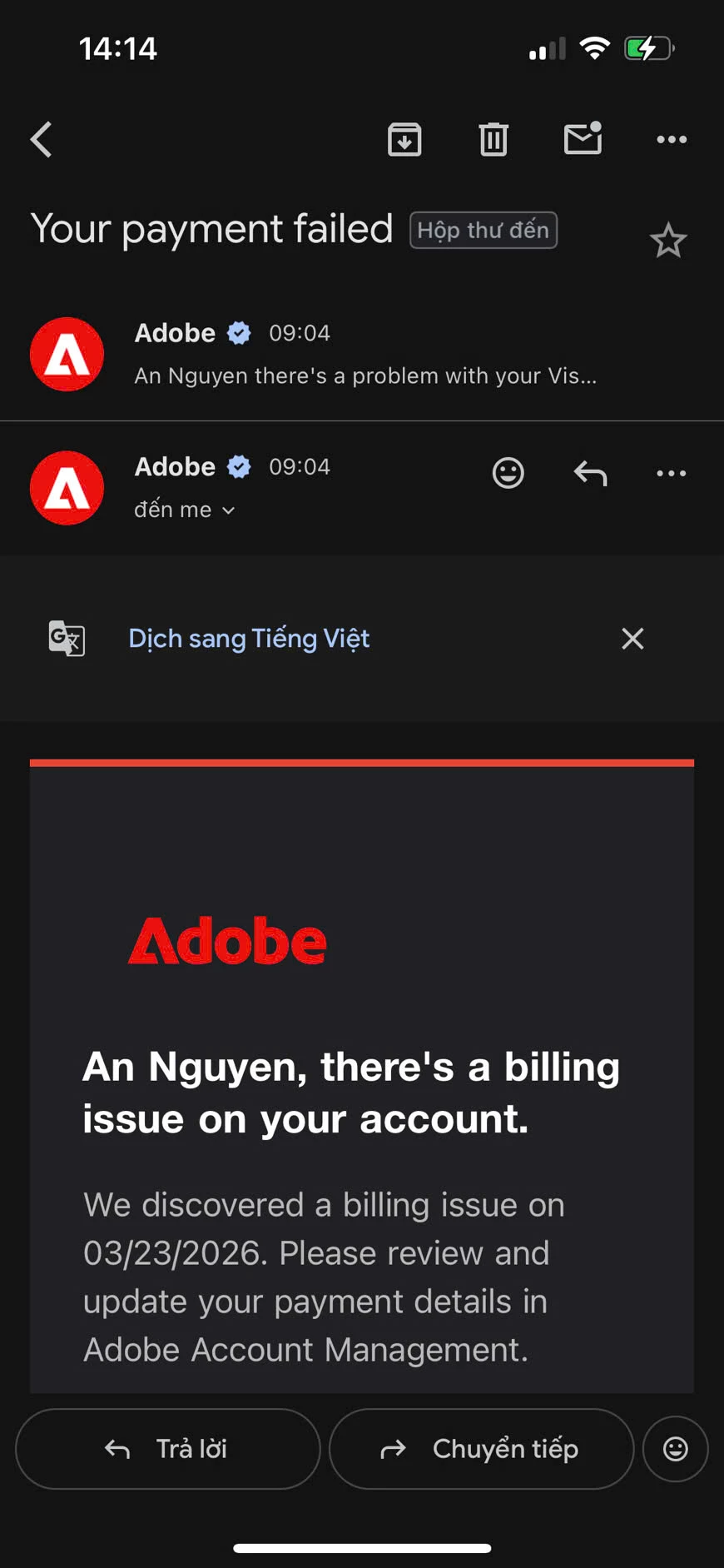 So I've cancelled my 2 plans, which are free trials on March 23rd, 2026, because I can't afford them. And I have emails confirming my cancellation. Today I received notice emails of failed billing on my account for those exact 2 plans that I've cancelled. They probably failed because my bank account can't afford them. So why am I still being charged? I can't afford them. Please help @AdobeEmployee.