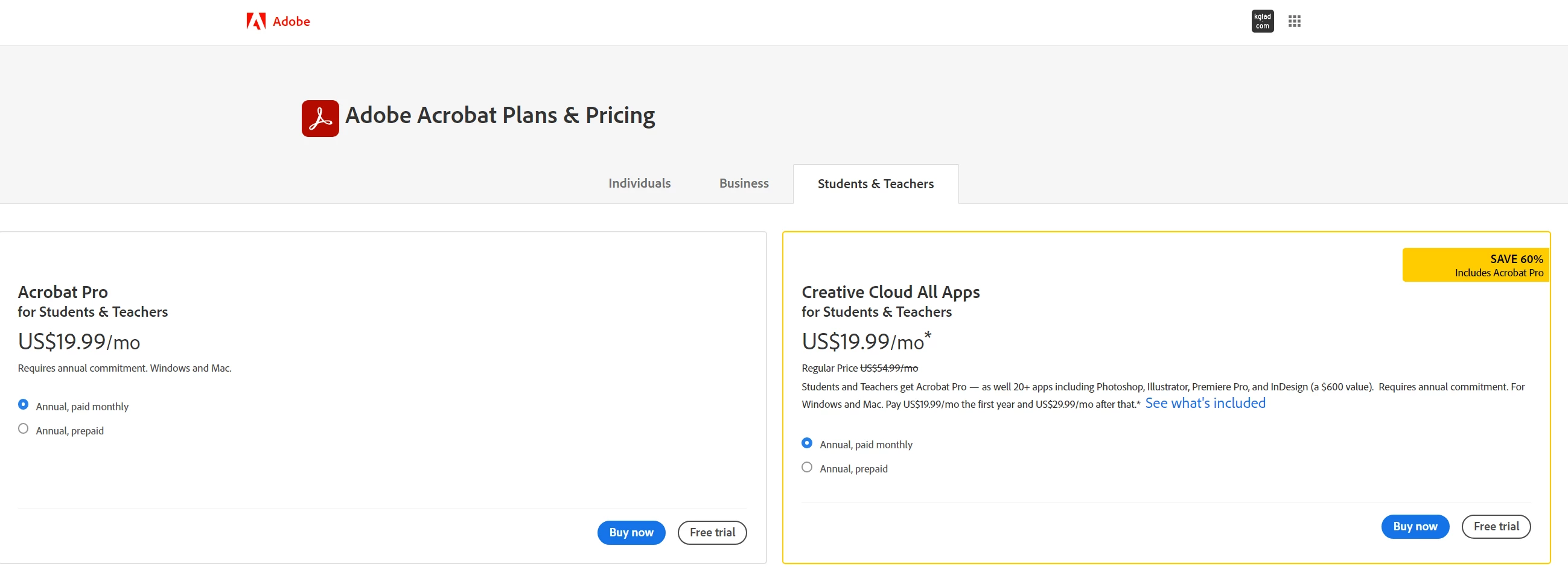hello, i there a adobe acrobat pro-"stanalone version" for teachers (no abo) which ican buy at the adope homepage? Thanks for your answer!