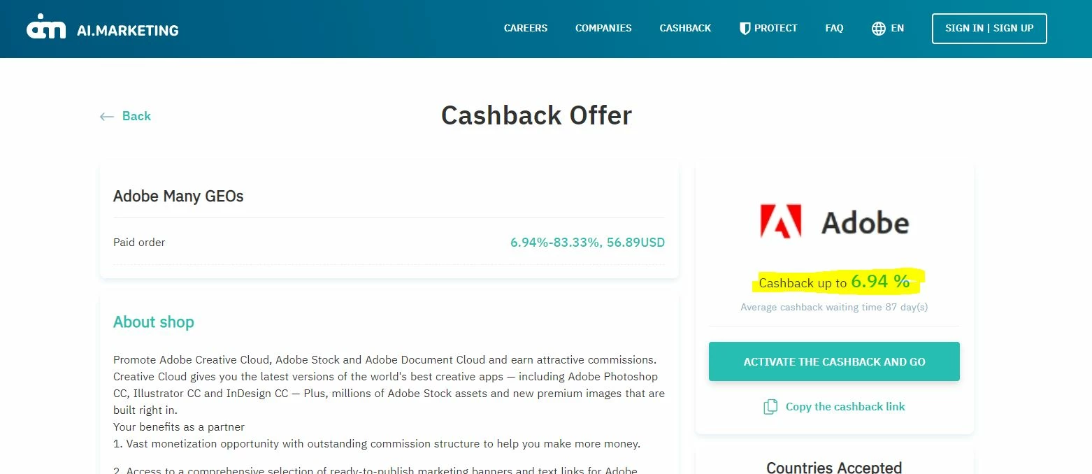 I would like to know if Adobe is really affiliated with ai.marketing website in any shape or form? as they are listing Adobe as one of their affiliates that are part of a cashback scheme.