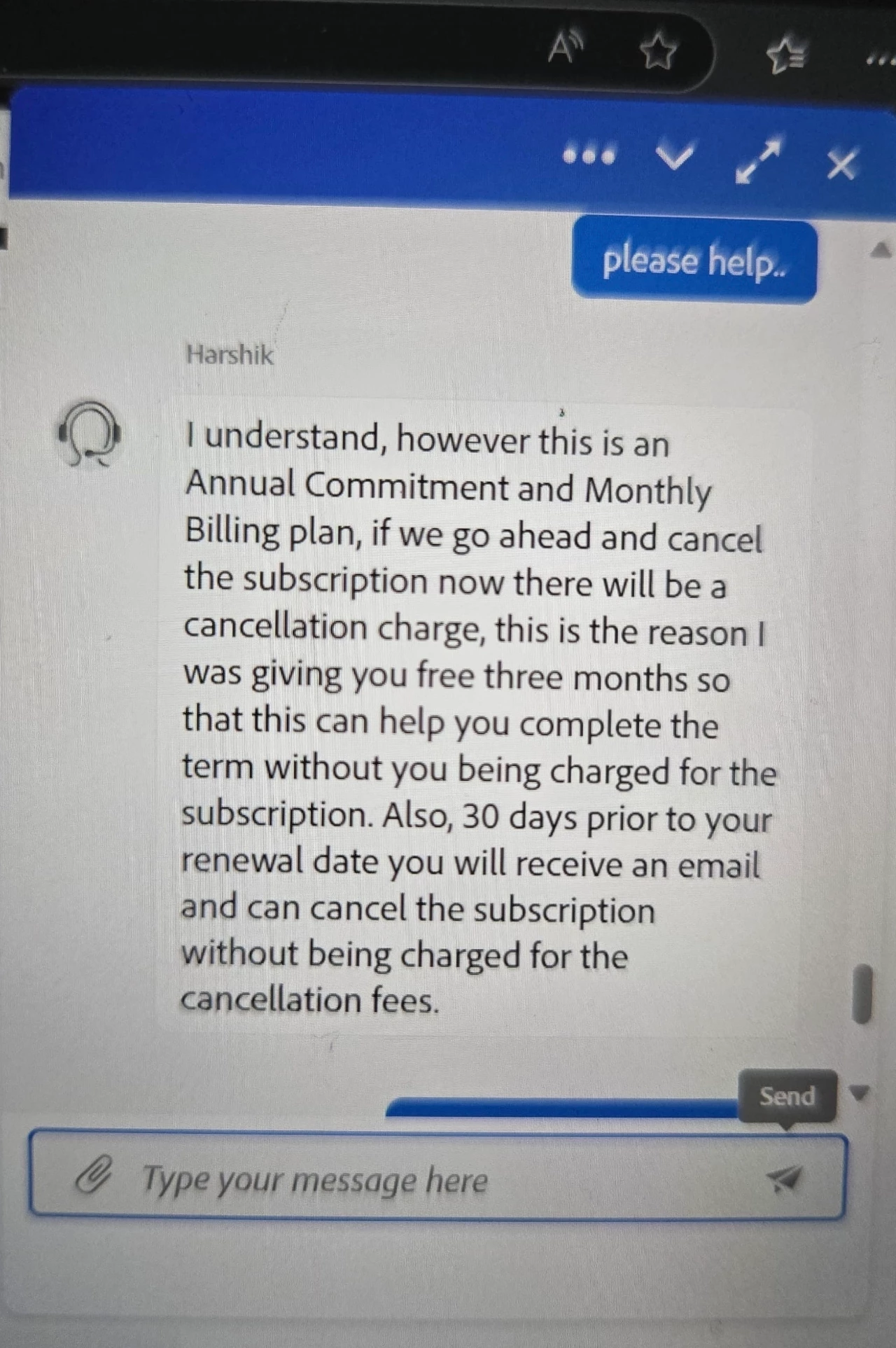 Mads, thanks for posting your question to this public discussion forum. Please see https://adobe.ly/4hQalK3 for information about fees and charges that are applied when canceling an annual membership. I recommend setting a reminder in your calendar app if you want to cancel an annual membership without charge. ^JW