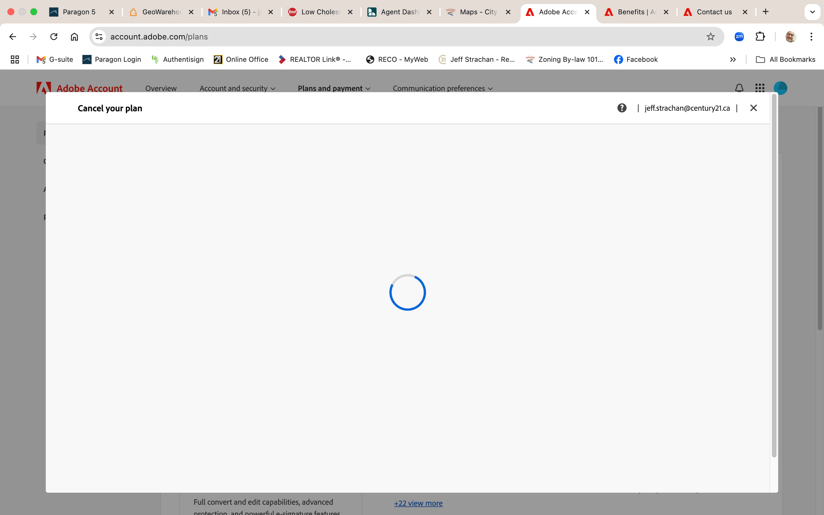 I no longer need Lightroom butwhenI go to "Cancel Plan" the page doesn't open, just sits there with the revolving circle.