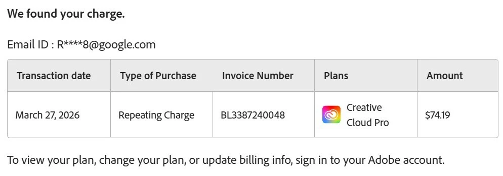 Hi, I have been charged for many months, maybe over 2 years by an unknown email. I just knew about the Adobe Charge Identifier feature recently, and really just found out. I would like to cancel this immediately. Can you please help?