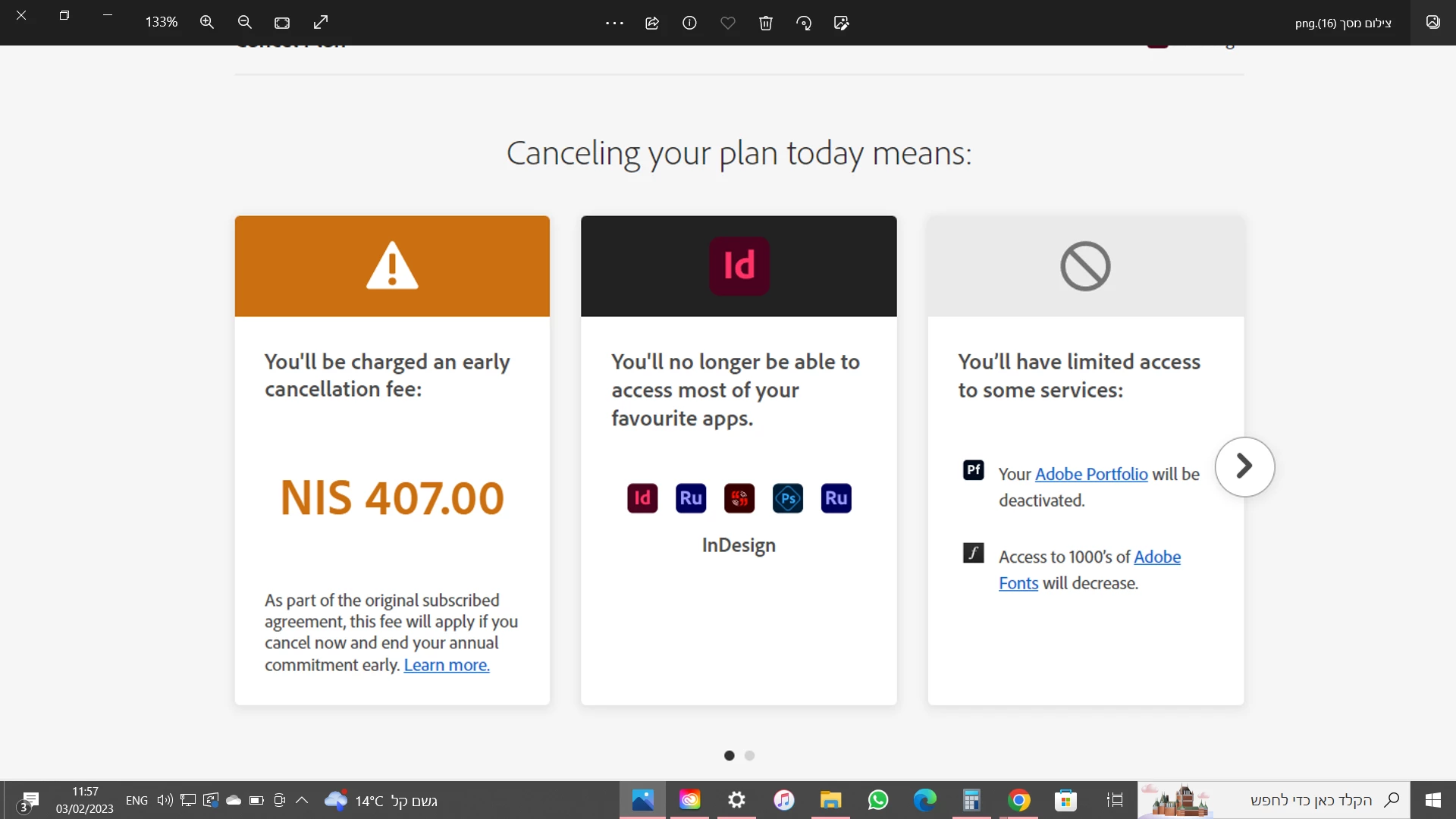 When i'm trying to do that i'm getting a notice says that i'll be charged an earlly cancellation fee  - 407 NIS!!!