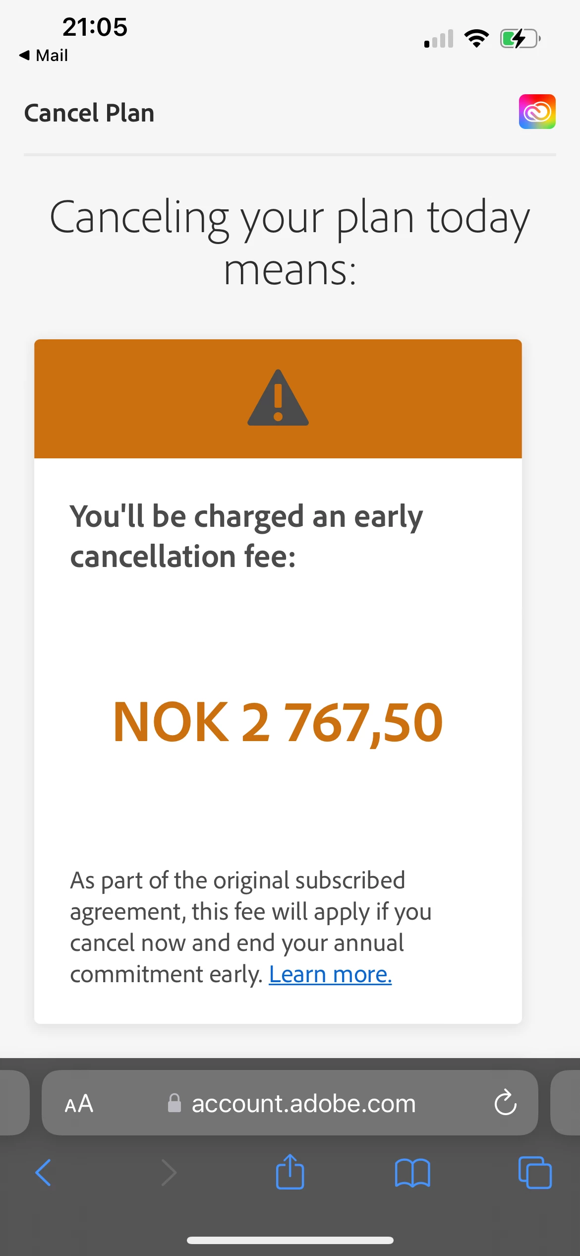 Been subscribing since July 2020. I now want to cancel my plan, and I can't without paying a ridiculus fee. My one year subscription should be over by now? I also dislike the fact that I cannot talk to an actual person..