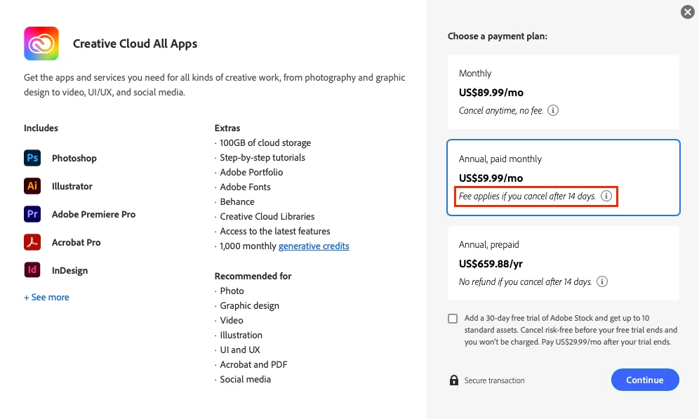 I wanted to get Adobe for a month to just test it out and see if I liked it but by the end of the month I wanted to cancel It but then was given a $99 early cancelation fee. Just because I didn't use this for a year I'm now being charged. This is beyond stupid seeing as I just wanted to test It out. Adobe is a money-hungry company that is way overpriced and I'm beyond livid. I'm a poor college student trying to get by and simply can't afford to deal with this. beyond disappointed...