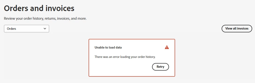 After logging into my account, I keep getting an error whenever I click on any of the tabs.