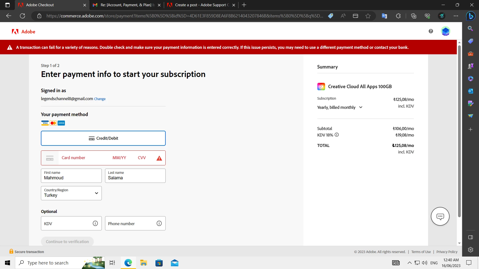 Hello, I am from Egypt and I'm facing a problem with the payment method, I had tried so many Cards to pay with but the website give me a message that tells me that there is a problem for many reasons and I don't know where is the error!