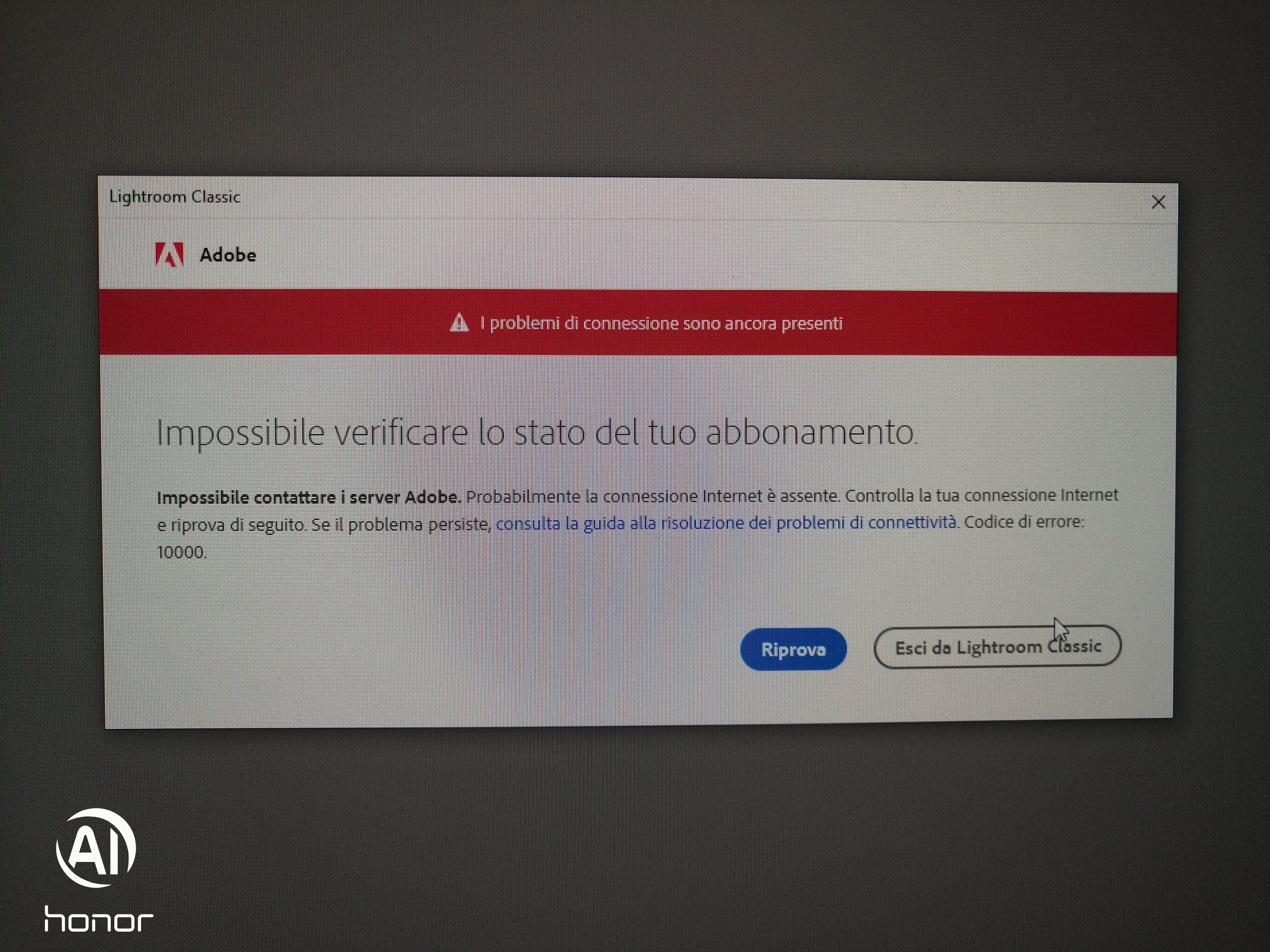 I changed the payment method for my 20GB Photography plan from monthly to annual. Since making this change, I've received the attached message, which prevents me from proceeding. At that point, I exit by Lightroom Classic and restarted the program, which worked well.