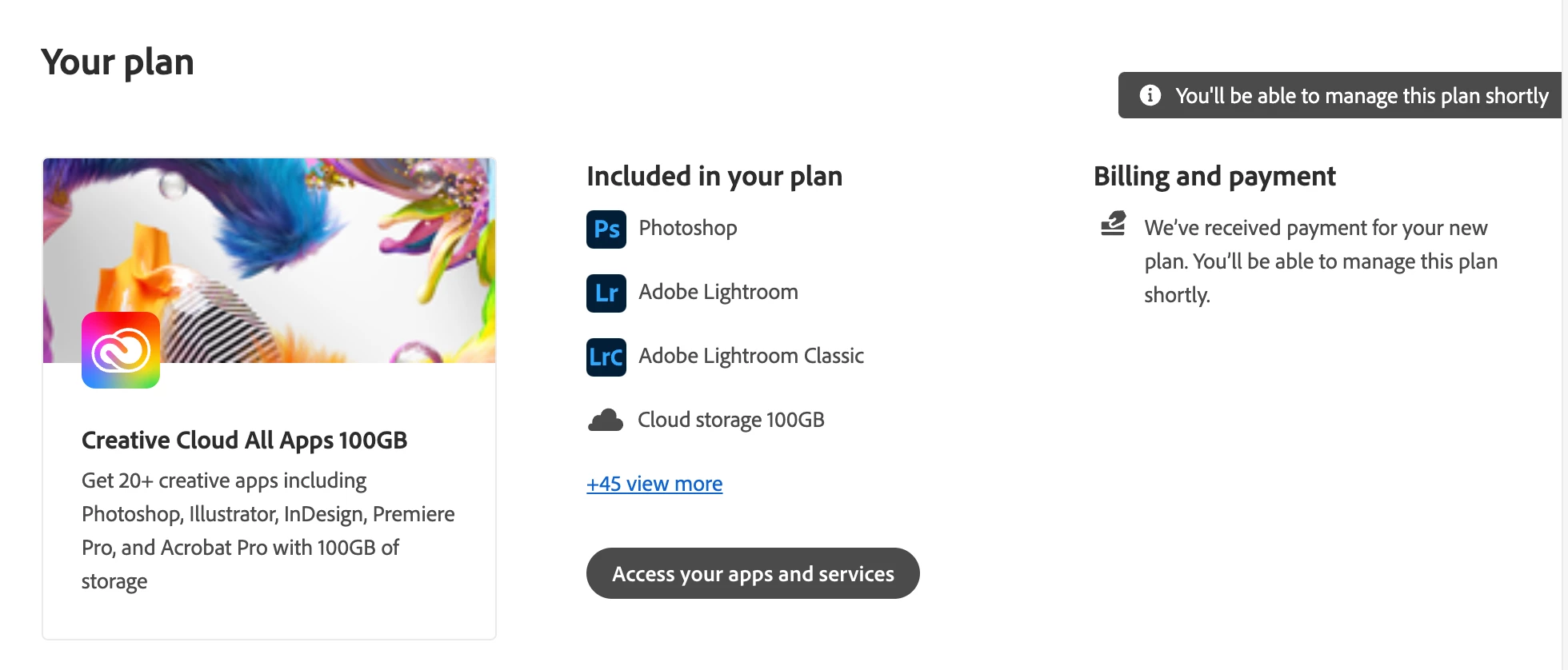 We’ve received payment for your new plan. You’ll be able to manage this plan shortly."