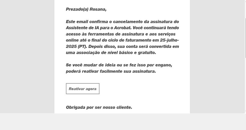 Preciso de uma verificação do cancelamento de um serviço que realizei no mês passado, julho de 2025.