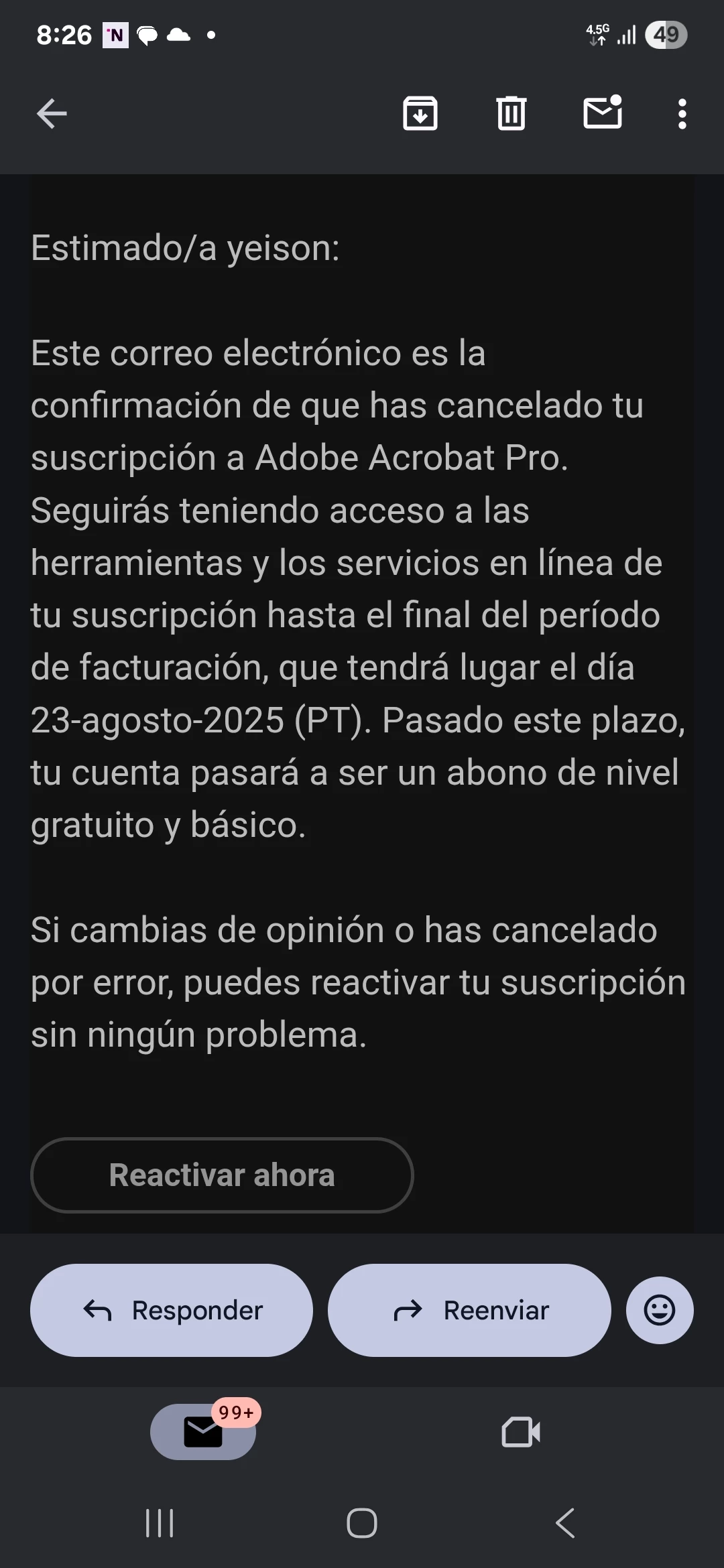 Cobros despues de cancelar