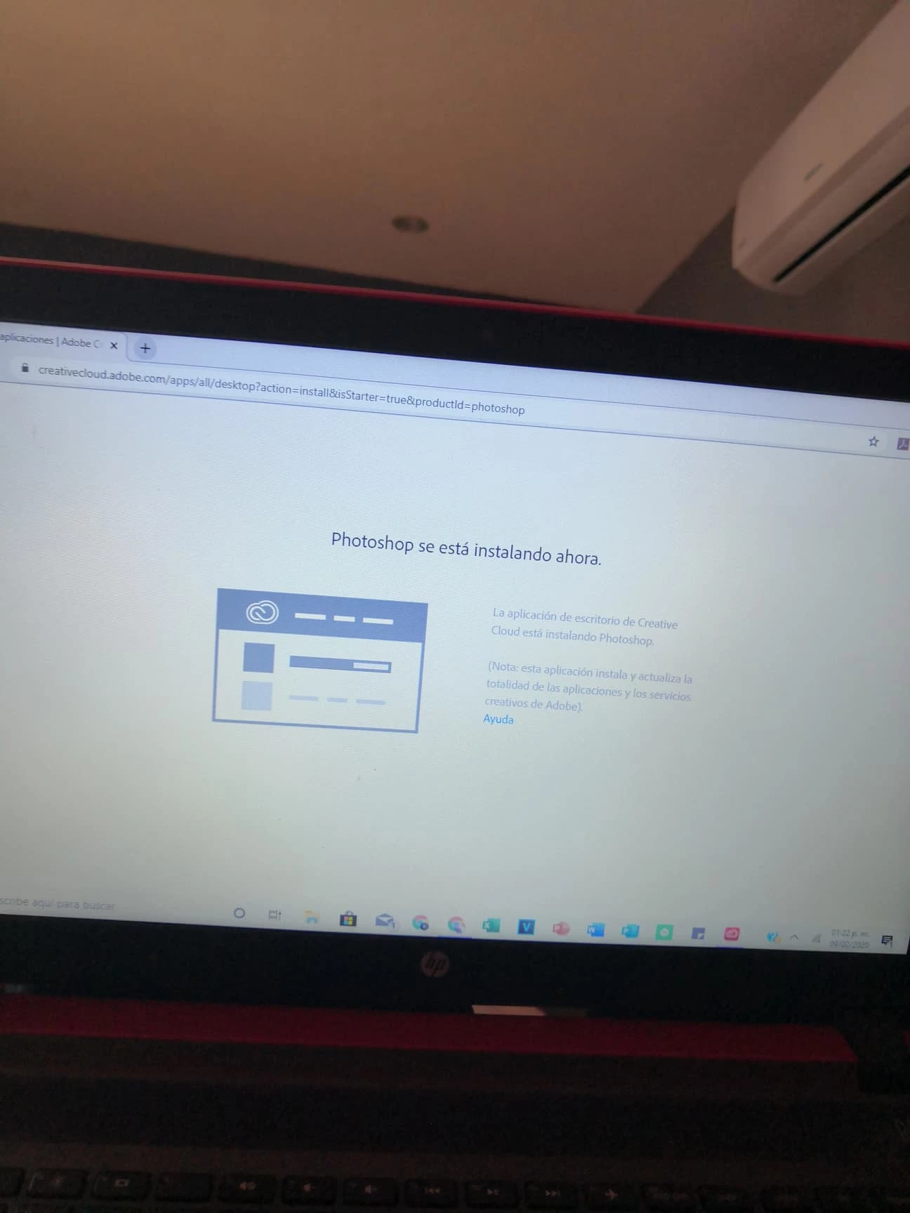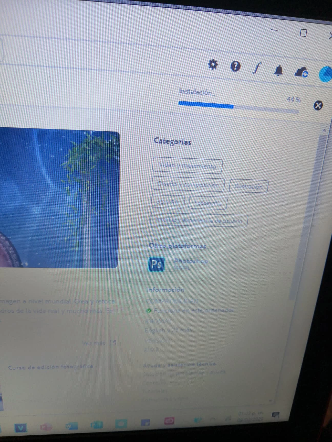 compre la app de photoshop pero no se descarga queda en 44%