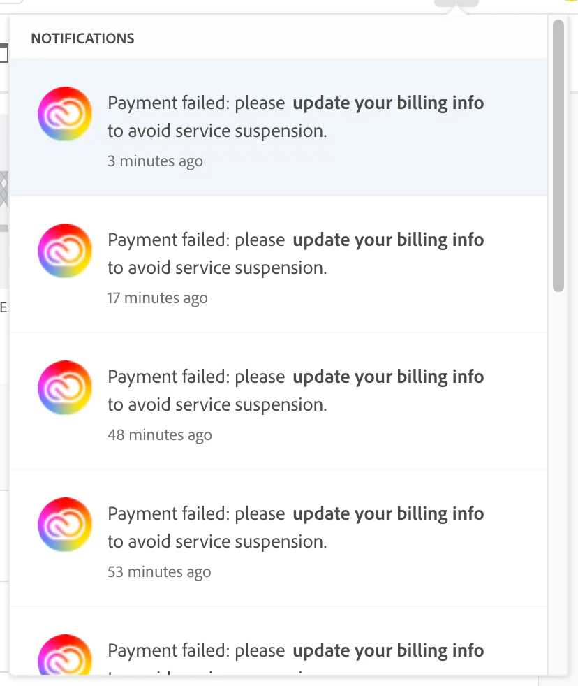 Creative cloud Keep showin payment failed