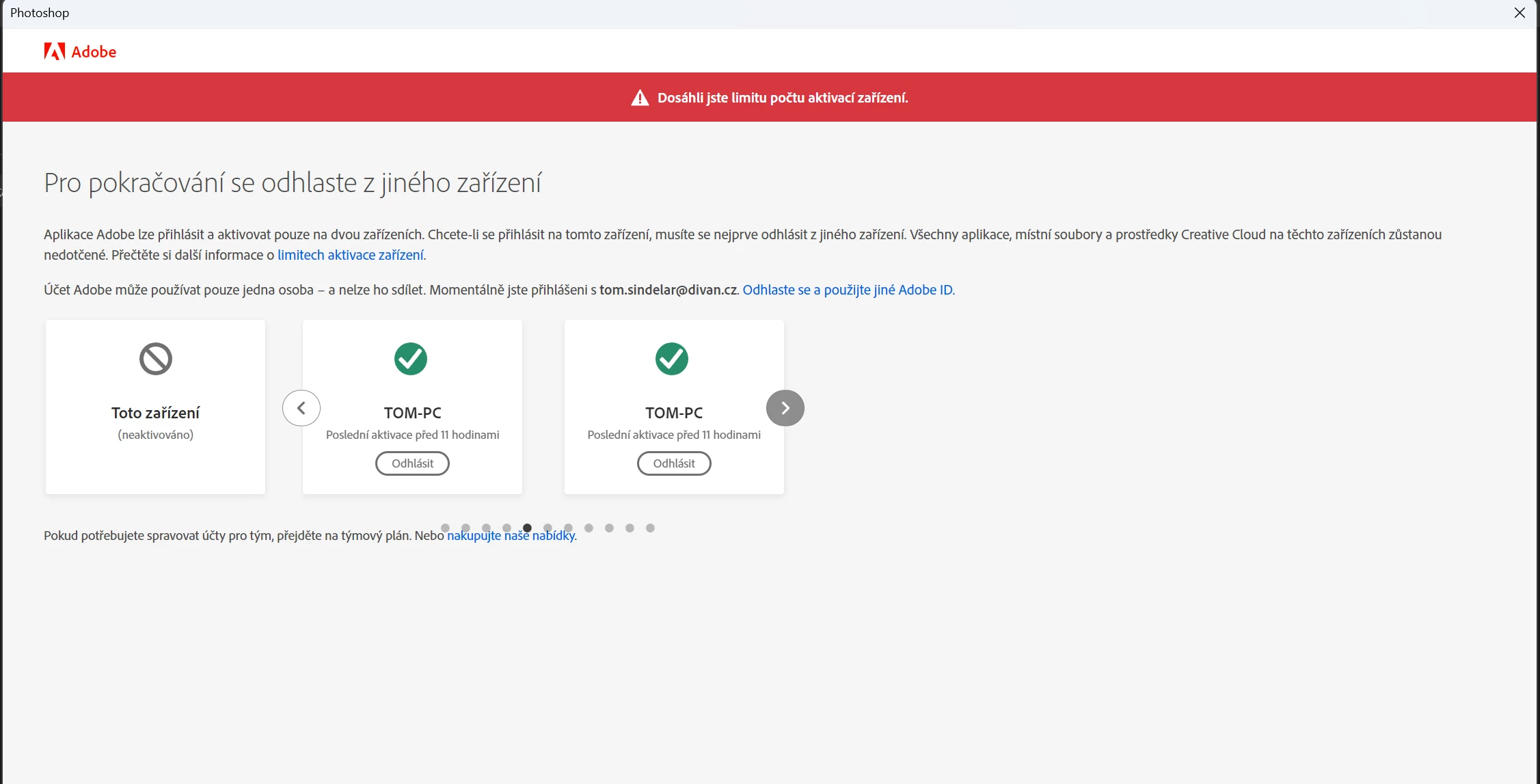 I wanted to sign in on my laptop to use adobe software, and i get activation limit reach message. There are many many devices with same name, look at the dots how many devices are connected...it looks weird.