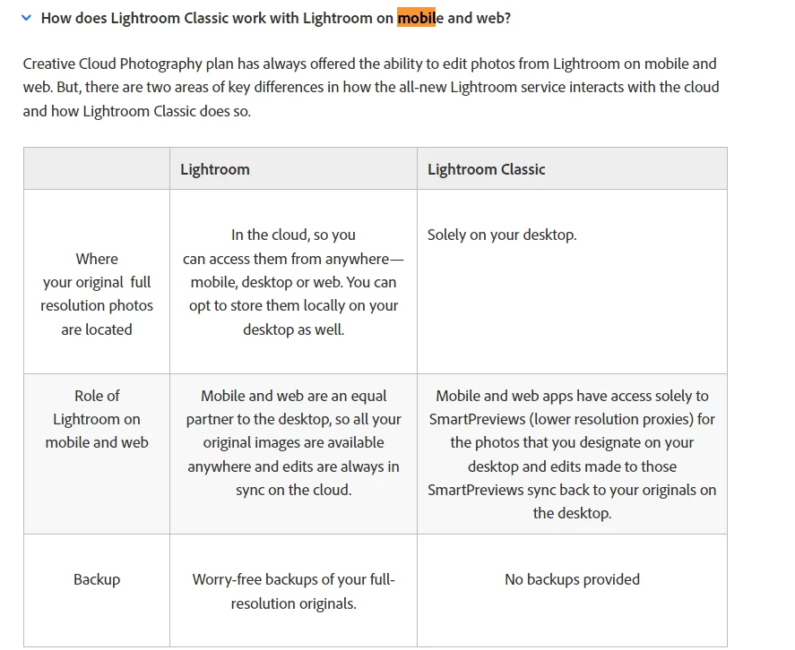 It doesnt mention exactly LR Mobile, and I wanted to be sure that if I upgrade to that subscription I maintain access to the premium LR Mobile tools (as masking, DNG support...).