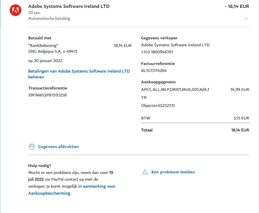 I included a screenshot of paypal that tells me money was billed and a screenshot of my Adobe invoice and billing history, to show that these two payments are not related.