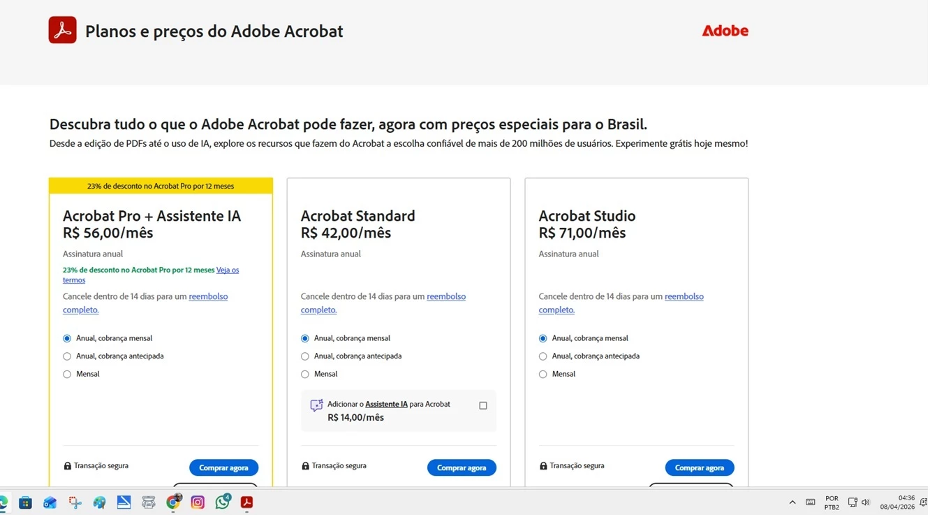 O que acontece com esta falta de organização da Adobe é uma zona cada hora me intercedem meu trabalho colocam tela no meu monitor com narrativas sem nexo, mostrando novos planos e tenho que parar meu trabalho para perder tempo com besteróis. Seis contratam crianças com faixa de idade dos 20 aos 35 anos que são TI e ficam nos infernizando mandando novos planos, tenham a santa paciência todos os dias mandam besteróis e tenho que parar meu trabalho que sou pago por empresas, e isto é muito sujeira de falta de recursos humanos decente na Adobe Acrobat. Vejo muitos usuários reclamando de voces que seis não tem vergonha na cara de fica criando confusões com o público quando irão aplicar IA e nem sabem o que seja inteligência artificial do jeito moleque que nos tratam, veja meus anexos de hoje e vou cobrar na justiça cada minuto que me tiram de meus contratantes.