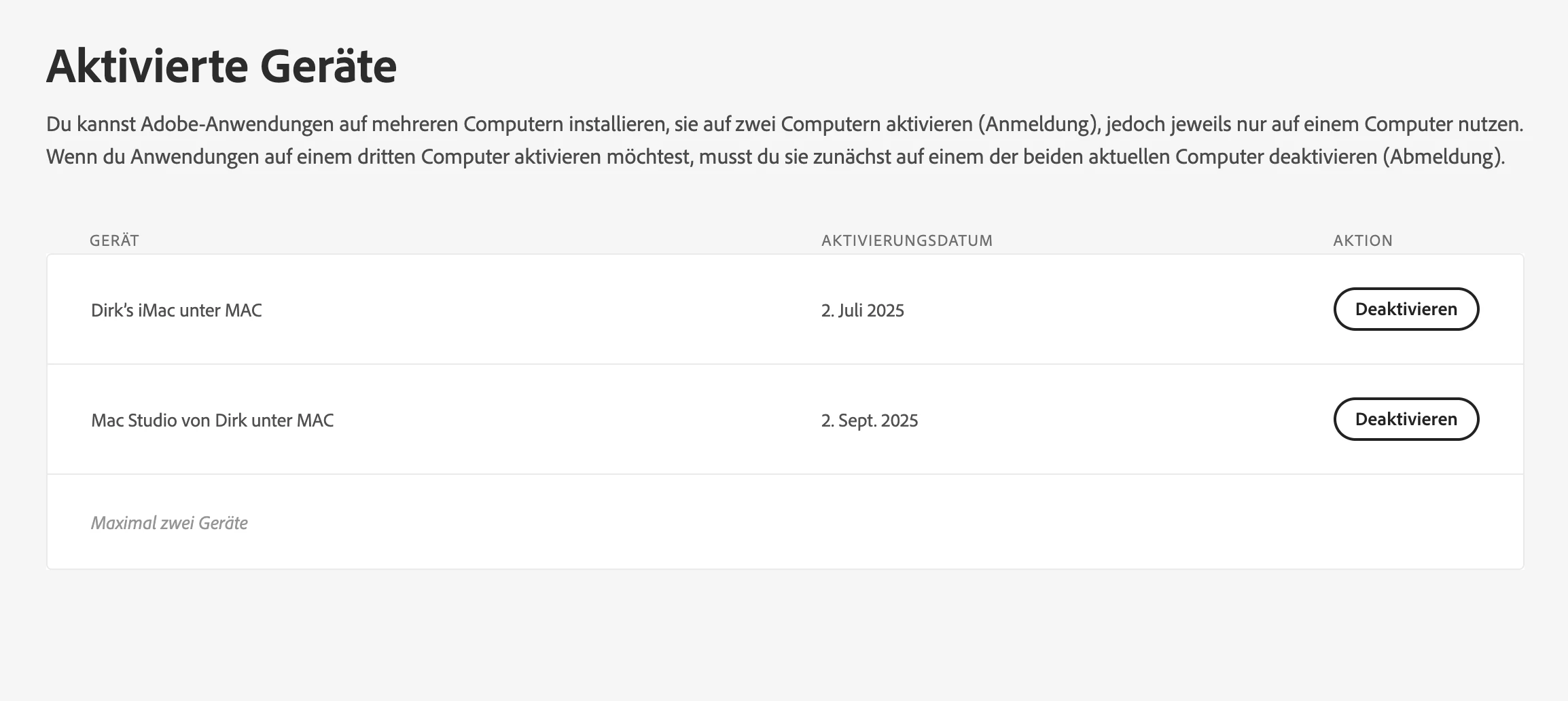 Fehler: Dein Adobe-Konto scheint von mehreren Personen genutzt zu werden.