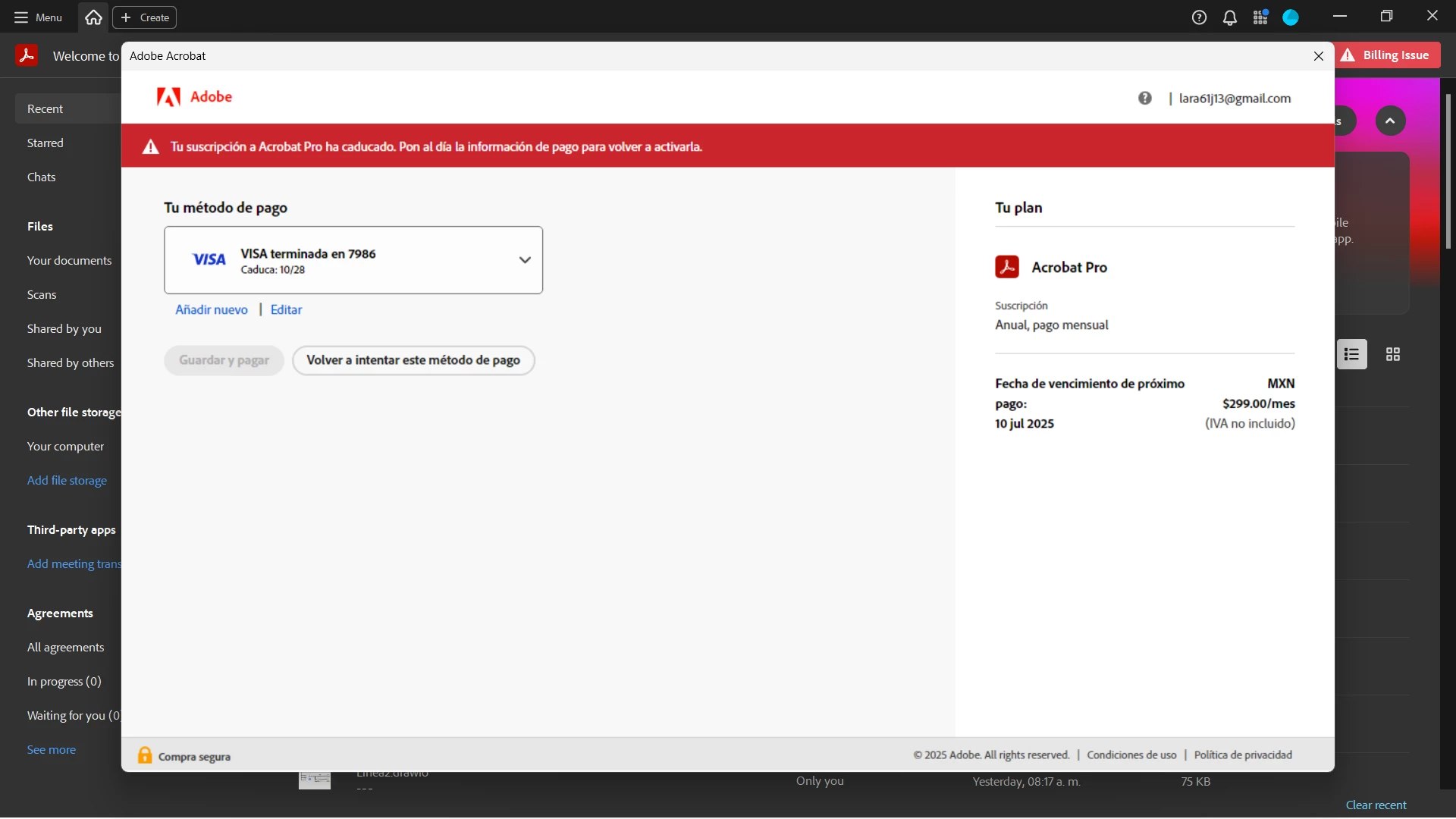 hola,quiero hablar con una agente,se realizo el pago pero no me deja utilizar el adobe pro