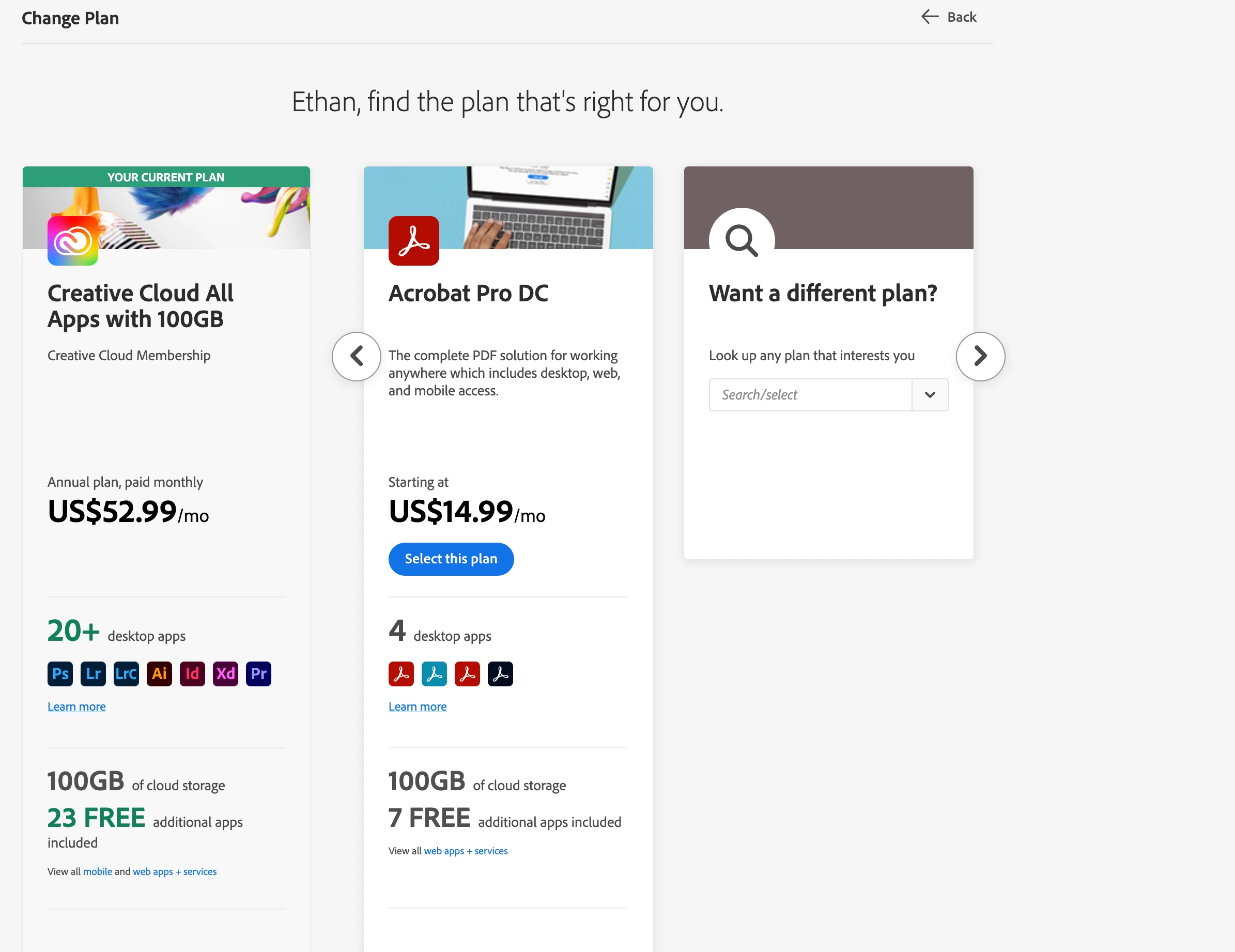 I'm trying to figure out how to change my payment plan from monthly to annual, but there doesn't appear to be any option for doing this on the "Change Plan" page: