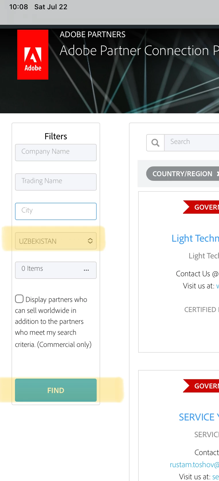 Filter to your country on the left hand side, then click Find to see all of the certified resellers in your country.
