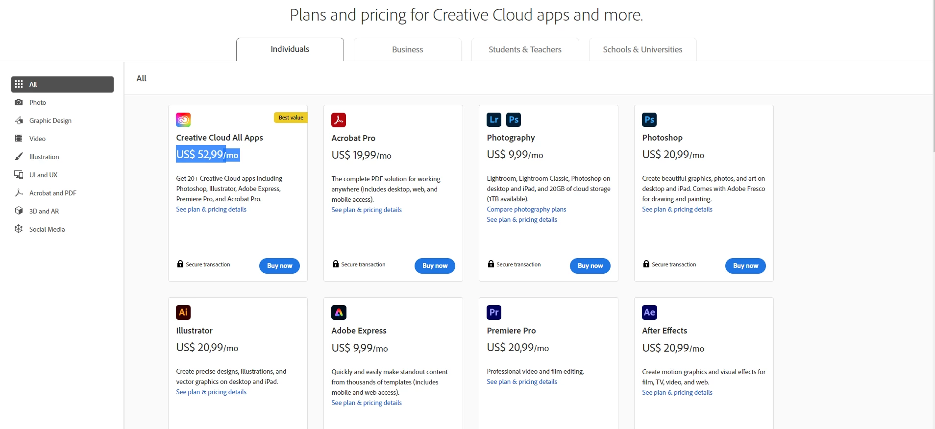 The subscription proposed by adobe according to my location is US$ 52,99/mo, in my country only the big companies can afford it.