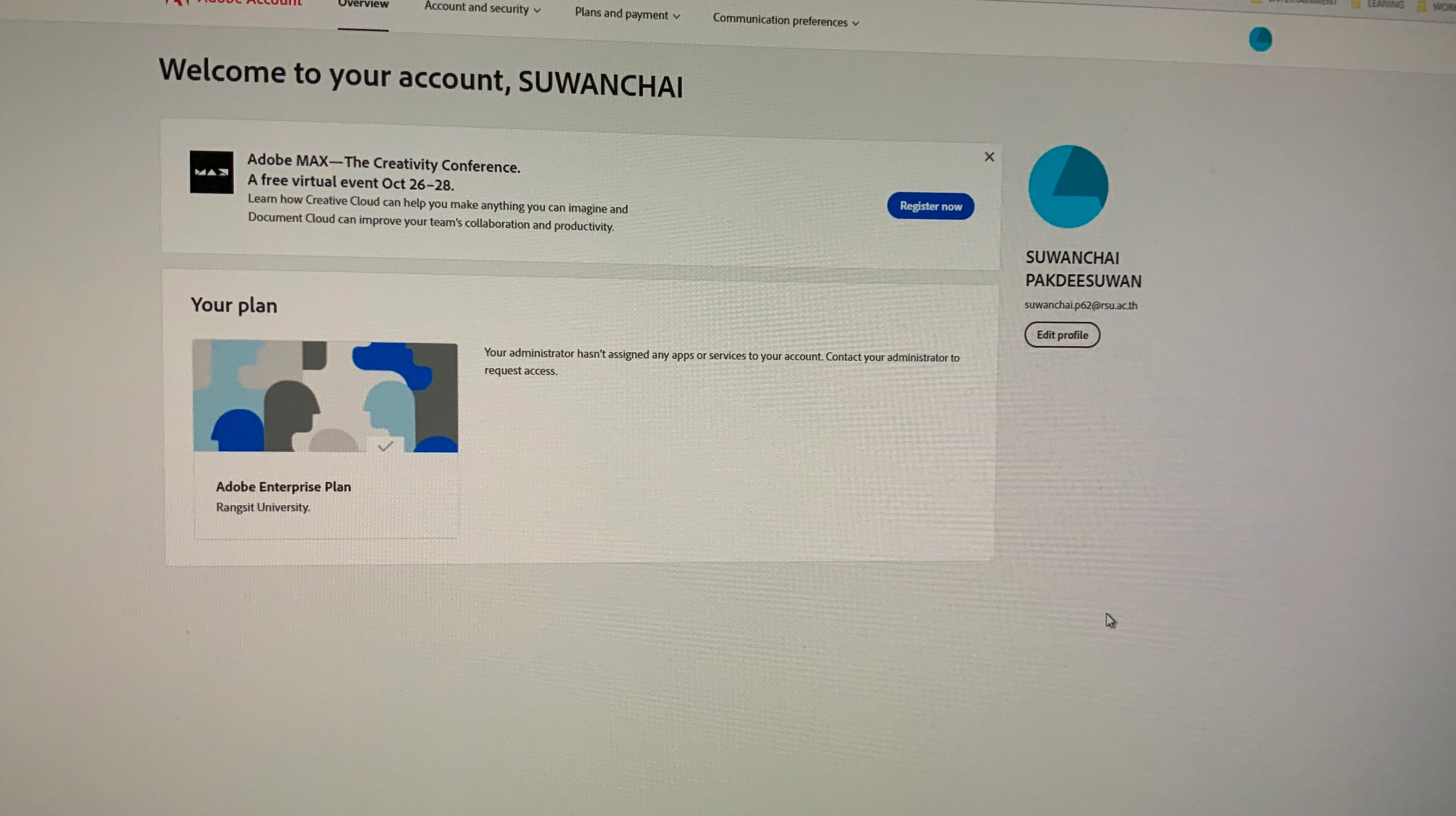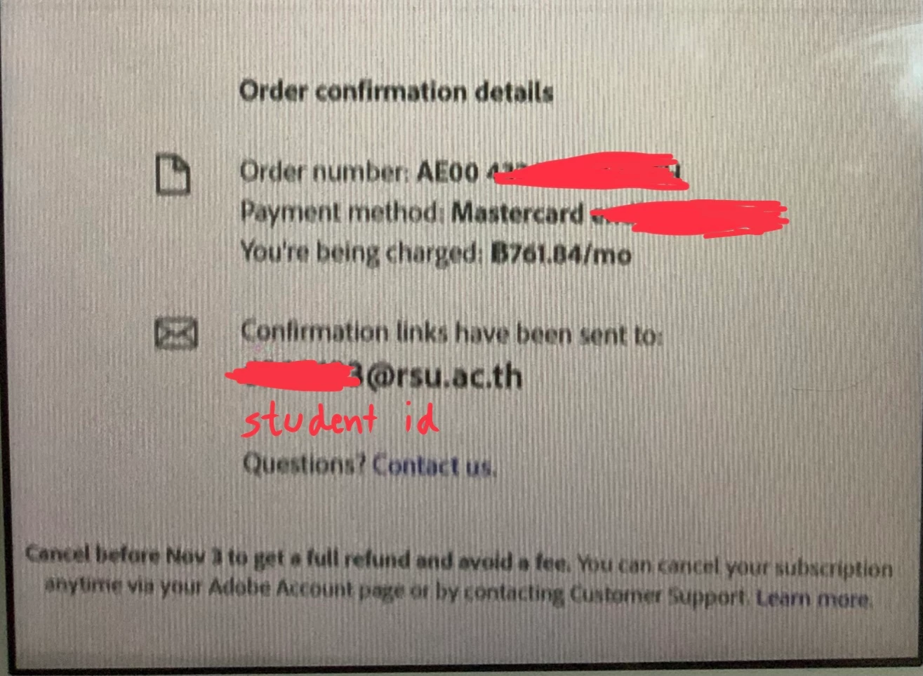 I already ask my university admin about the account, and they tell me that the student id email (that I used for buying a plan) is only use for adobe register and log in to adobe account only. So the student ID email account is does not exist.
