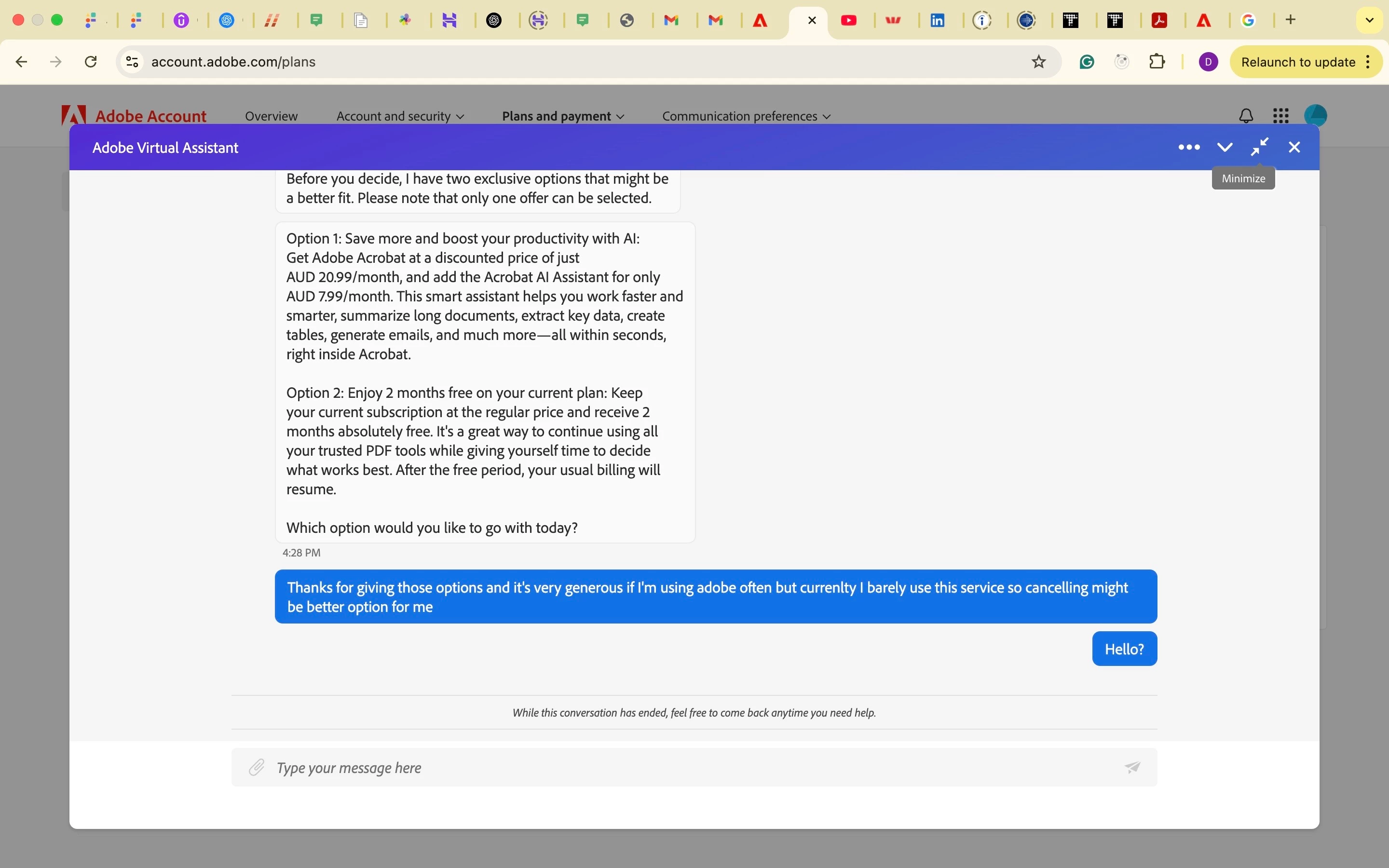 I haven't agreed to extend my acrobat subscription but they keep charging after one year.