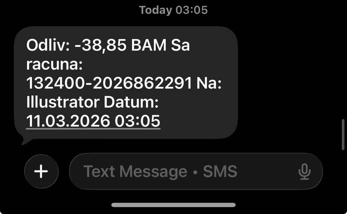 I had an option to get Adobe Illustrator for free. It said I would pay nothing for the first 7 days, but immediately after activation of the free trial i was billed the full amount. Here is the SMS from my bank as proof of it taking my money, 38,55 BAM.