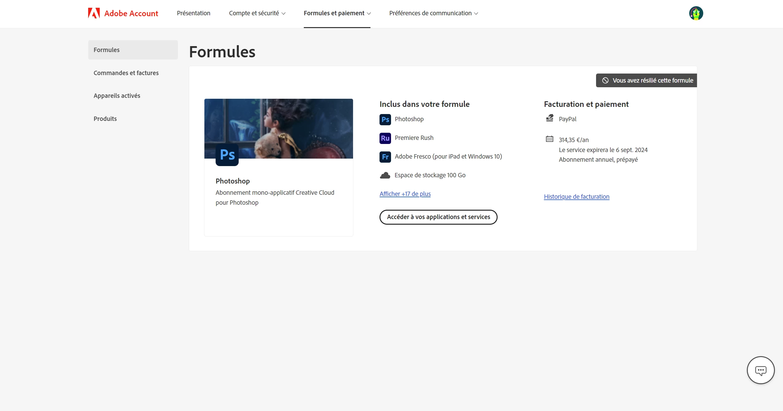 Hello adobe, I did renew my subscription and after I terminate it to not pay it again next year. But I don't understand why I can't use photoshop anymore because I paid this for this year. How do we do ? I can't give 288 euro for free to Adobe who cannot let me use the app again. I need a solution quickly please since It's my work tool. Could you please send me a refund or let me use the app.