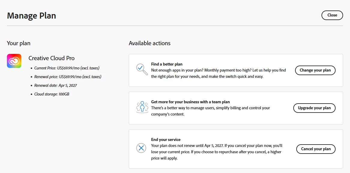 https://account.adobe.com/plans