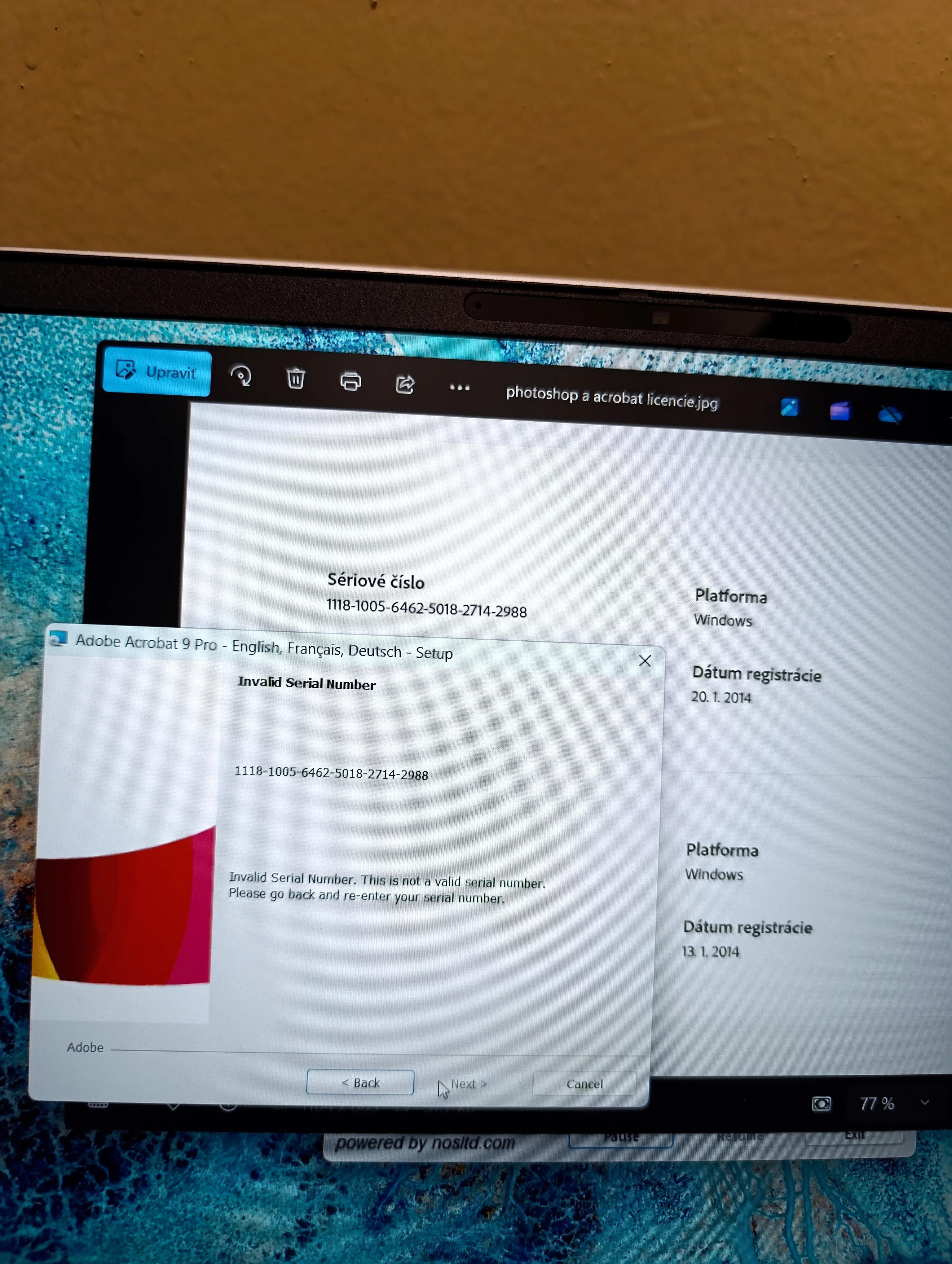 I change computer where I had installed Photoshop CS4 and Adobe Acrobat 9 Pro. Virtual AI offered me to download this version, licence number
